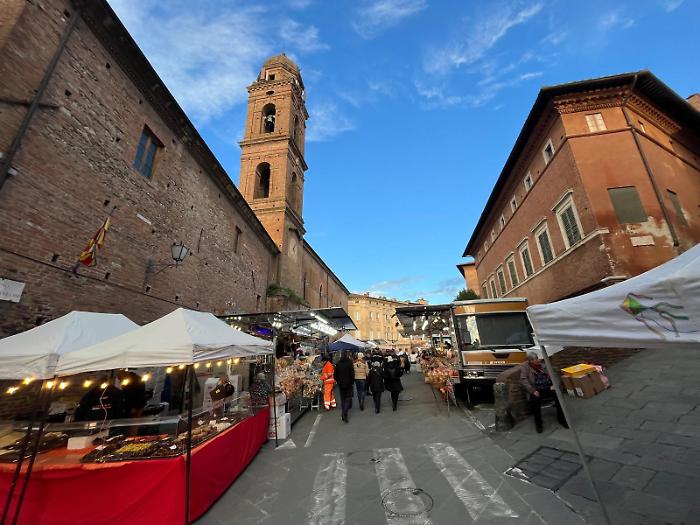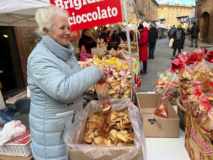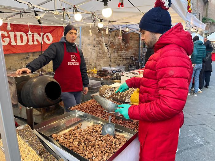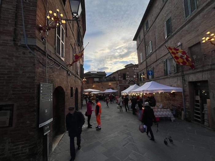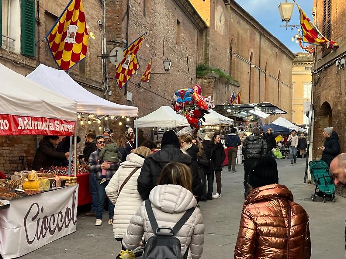 Il 13 dicembre, celebrazione di Santa Lucia, a Siena non è un giorno qualunque: per i più piccoli è un trionfo di divertimento, di leccornie, zucchero filato, frutta secca, dolcetti e giocattoli; per i più grandi è come tornare bambini lungo Pian dei Mantellini allestita con banchini pieni di campanine, croccanti e brigidini. Ma è una data che segna per molti senesi anche l'inizio ufficiale delle festività natalizie. Da questa giornata, la città si prepara all'atmosfera gioiosa e calda del Natale, con la mente rivolta all’albero e al presepe. Lungo la strada della festa spicca il banchino del castagnaccio e della polenta dolce, curato ogni anno dalle donne della Chiocciola, che da decenni è un simbolo di bontà e di sosta obbligatoria. Non manca nemmeno l'allestimento dei Piccoli chiocciolini con tanti oggetti realizzati e curati dai bambini di San Marco. E poi altri stand per tutti i gusti fino alle Due Porte. In vendita le bellissime campanine delle contrade che, secondo la tradizione, sono legate a Santa Caterina, che, con un miracolo, fece suonare tutte le campane della città per richiamare i senesi a riscoprire il culto di Santa Lucia, una santa dal profondo significato spirituale. Lucia, originaria di Siracusa, è nota per la sua storia di sacrificio e rinuncia, simbolo di luce e protezione, soprattutto per la vista. La sua figura è rappresentata con gli occhi su un piatto, a ricordare il martirio avvenuto durante le persecuzioni di Diocleziano.