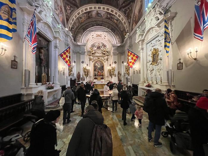 E' consuetudine inoltre visitare la chiesa, vicino all'arco, per ricevere la benedizione degli occhi e acquistare il panino benedetto, una bella tradizione che molti seguono, tramandata dalle nonne. Proprio il tempio dedicato ai santi Niccolò e Lucia, sede della Compagnia laicale omonima, è un luogo ricco di storia e bellezza. Ricostruita alla fine del Cinquecento su un precedente edificio medievale, presenta una facciata in stile tardo-rinascimentale, con affreschi di Ventura Salimbeni. All’interno, si possono ammirare numerose opere d’arte, tra cui il ciclo di affreschi di Sebastiano Folli e la grande tela di Francesco Vanni che rappresenta il martirio di Santa Lucia. Le statue in terracotta policroma del Quattrocento, attribuite a Giacomo Cozzarelli e alla bottega di Giovanni di Stefano, arricchiscono ulteriormente l’altare. La chiesa, con i suoi arredi in legno intagliato e le opere di scuola senese, offre un'atmosfera di profonda spiritualità. La cappella della Compagnia, ornata da affreschi e oggetti di culto, custodisce reliquie e stendardi storici, tra cui un ex voto risalente al 1496. Si tratta di un pezzo unico che raffigura Girolamo di Pietro Biringucci, il quale fu scagionato da accuse grazie all’intercessione di San Nicola.