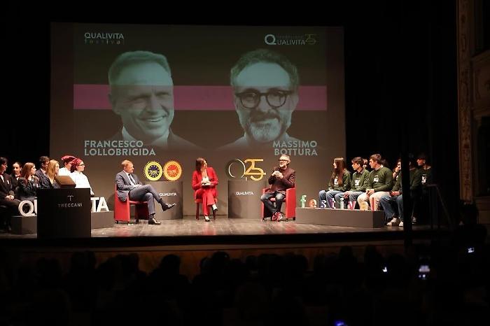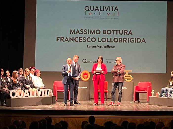 Il Festival di Qualivita, che festeggia i 25 anni dalla nascita, sta mettendo al centro dell'interesse nazionale la città di Siena insieme ai valori delle produzioni agroalimentari e vitivinicole di qualità europee. Ma c'è di più. L'occasione è stata martedì sera, 11 marzo 2025: "La cucina italiana non è solo un valore identitario, ma rappresenta anche cultura, radici e futuro". Questa premessa ha caratterizzato l’incontro avvenuto al Teatro dei Rozzi di Siena, dove il Ministro dell’agricoltura, della sovranità alimentare e delle foreste, Francesco Lollobrigida, e lo chef internazionale Massimo Bottura hanno entusiasmato il pubblico che ha preso d'assalto l'antica e bellissima casa dell'Accademia sorta nel 1817. L'evento, organizzato dalla Fondazione Qualivita, ha visto la partecipazione di moltissimi rappresentanti dei Consorzi di tutela italiani, le istituzioni senesi con il sindaco Nicoletta Fabio, i parlamentari Michelotti, Caiata e La Pietra. Non sono mancati nemmeno gli studenti dell’Istituto agrario “Ricasoli”, a dimostrazione dell'importanza del legame tra formazione e settore agroalimentare.