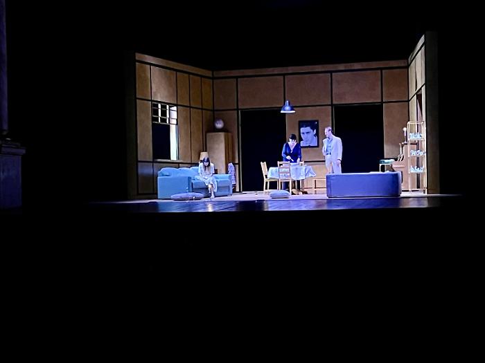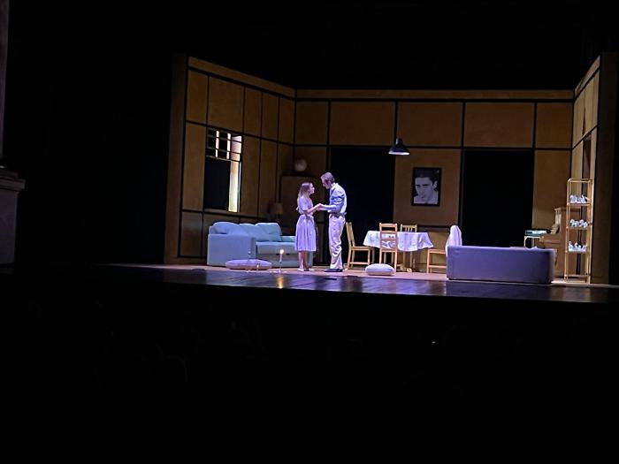La scena di casa Wingfield, con ambienti che inizialmente sembrano rispecchiare una classica abitazione borghese, si rivela man mano come la proiezione di una ricerca ossessiva di sicurezza e rispettabilità. Ogni oggetto, dal mappamondo all'abat-jour, sembra riflettere un ordine esasperato, che contrasta con il disordine portato dal figlio Tom, rappresentato da un Gabriele Anagni bravo, a suo agio e calibrato, che riesce a trasmettere le frustrazioni di un giovane intrappolato in una vita che non sente propria.