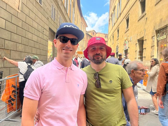 Dalla Francia è giunto Victor: "Che bellezza. Abbiamo trovato un posto dove alloggiare e abbiamo viaggiato intorno a Siena, è una città davvero bella e mi piace molto il ciclismo in generale. Giro d'Italia, Tour de France sono tutti fantastici. E in questa Piazza l’arrivo è magico".