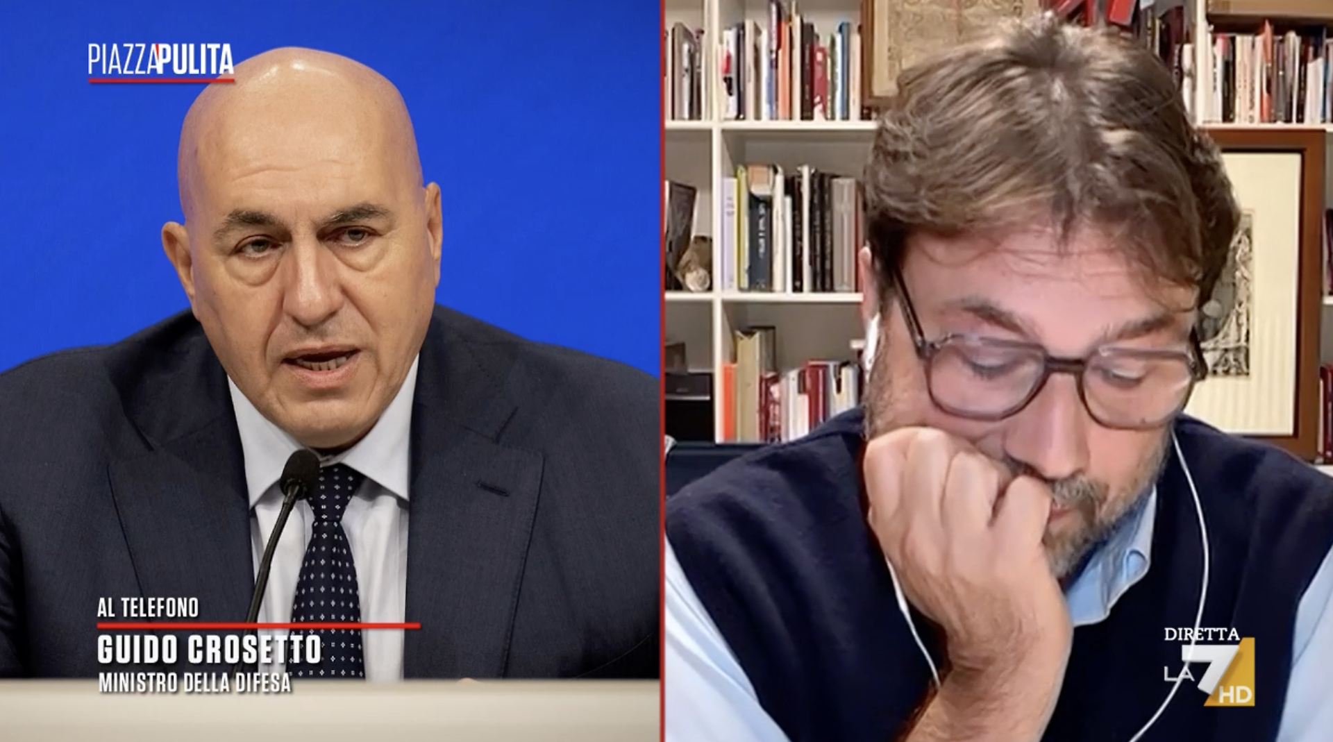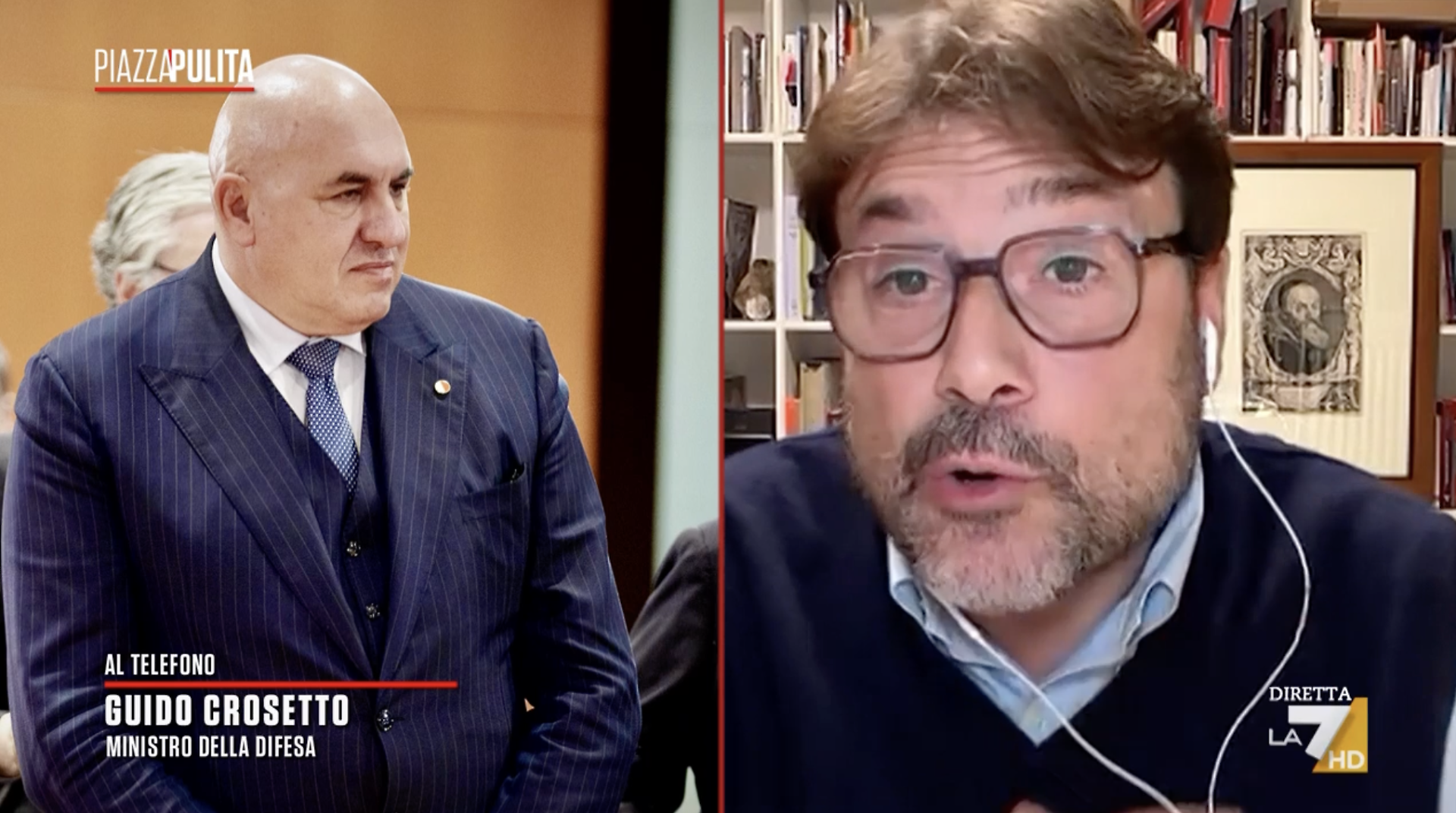 Dopo un battibecco con Formigli, altri interventi e spiegazioni, si accende lo scontro tra il ministro e il rettore. Pesantissima la parte finale. Montanari attacca: "Lei sta dentro a un governo ed ha delle responsabilità, di cui dovrà rendere conto". Crosetto: "Ma tanto lei questo governo lo criticherebbe qualsiasi cosa facesse". Montanari: "Se si dimettesse...". Crosetto: "Il governo, anche in questa situazione come in altre, ha tutelato i cittadini italiani e quello che sta facendo per cercare di fermare questa guerra e gli aiuti che ha portato in questi anni, sono secondi a nessuno in Europa". Il rettore si lascia andare: "Propaganda. Propaganda di un complice del genocidio".