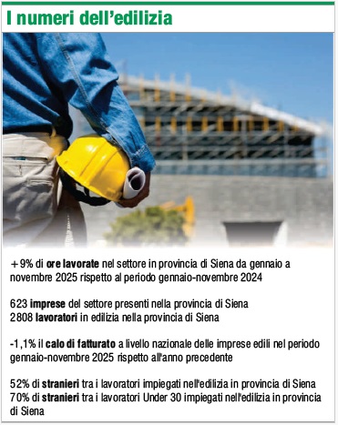 C’è poi un altro dato interessante, relativo a chi lavora nel settore. “Il 52% dei lavoratori in edilizia nel territorio della provincia di Siena sono stranieri - constata il presidente della Cassa Edile. - Ma se guardiamo ai lavoratori sotto ai 30 anni notiamo che addirittura il 70% di loro sono stranieri. Ciò significa che i giovani italiani non si stanno avvicinando a questo settore”.