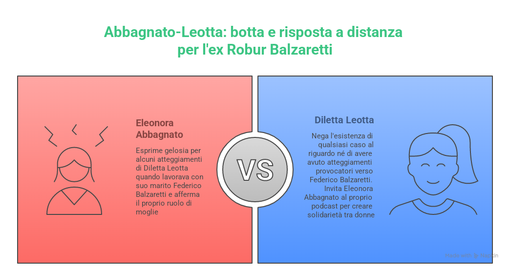 Il duello a distanza tra Eleonora Abbagnato, moglie dell'ex giocatore della Robur Federico Balzaretti, e Diletta Leotta, che con lui ha lavorato per qualche tempo a Dazn, si arricchisce di una nuova puntata.