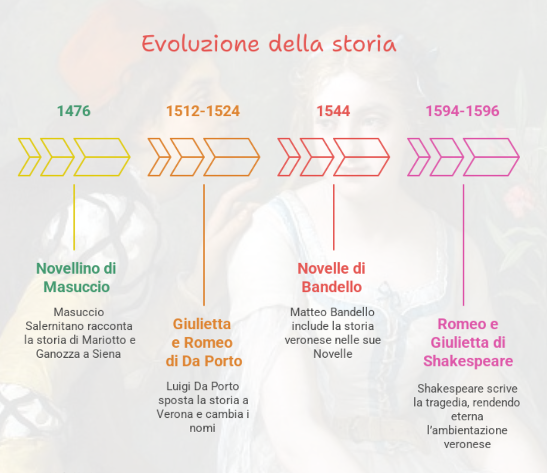 Verona ha saputo costruire attorno a un mito una delle più potenti operazioni di marketing culturale del nostro tempo. Una leggenda fondata sul nulla, o meglio, su una storia trasferita, adattata, riambientata. Perché Romeo e Giulietta, nella città veneta, non ci sono mai stati. La loro vicenda, a quanto pare, prende origine da un racconto tutto senese, quello che riguarda Mariotto Mignarelli e Ganozza Saraceni. Il primo a raccontarne le gesta fu Masuccio Salernitano, nel suo Novellino (Novella XXXIII) del 1476. Una narrazione intensa, carica di riferimenti reali, di strade, piazze e famiglie realmente esistite. Una storia d'amore osteggiata dalla durezza delle convenzioni, dalla crudeltà del destino. Questi avvenimenti vennero successivamente riscritti e spostati a Verona da Luigi Da Porto, autore vicentino che nel 1524 diede un nuovo titolo, nuovi nomi e una nuova cornice: Istoria novellamente ritrovata di due nobili amanti. Da lì in poi, la fortuna del racconto si fece europea, passando per Matteo Bandello e infine per William Shakespeare, che con la sua celebre tragedia ne consacrò per sempre l'ambientazione scaligera. Ma le radici erano e restano senesi.