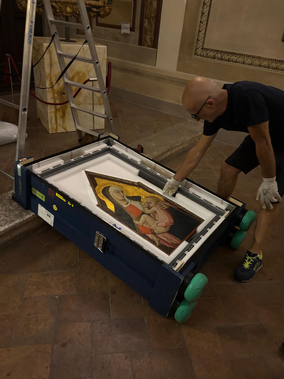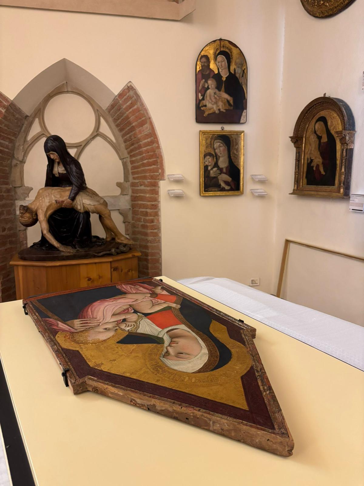 La vetrina prestigiosa che ha permesso di far conoscere a un pubblico globale capolavori assoluti: la Diocesi in particolare aveva prestato la Madonna del Latte di Ambrogio Lorenzetti, il frammento di Crocifisso di Lando di Pietro, l’icona bizantina del Carmine, una rara lastra marmorea incisa attribuita a Guccio di Mannaia e le due celebri sinopie dell’Annunciazione provenienti dall’Eremo di Montesiepi. Il 10 luglio sono rientrati presso la Basilica dell’Osservanza di Siena la testa di Crocifisso di Lando di Pietro e il cartiglio autografo dell’artista, già ricollocati nel piccolo museo della Basilica (la speranza è che in futuro possano tornare visibili all’interno della chiesa stessa, restituendo al pubblico il contesto originario della loro fruizione). Il 16 luglio è rientrata al Museo Diocesano di Siena la Madonna del Latte, la lastra incisa di Guccio di Mannaia e l’icona del Carmine, mentre il 22 luglio in ultimo faranno ritorno all’Eremo di Montesiepi le due sinopie lorenzettiane.