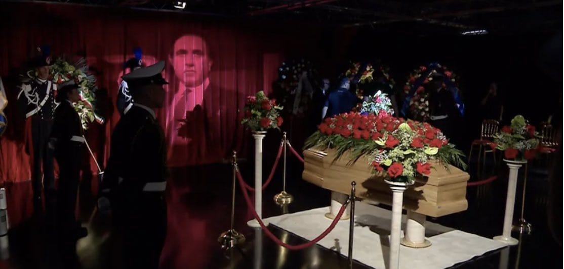 Rosario Fiorello è rimasto raccolto in preghiera per salutare Pippo Baudo. “Per noi siciliani sapere di essere siciliani come Pippo era un vanto e noi lo seguivamo più di altri anche per Antenna Sicilia”. Ha aggiunto: “Non sento il peso della sua eredità: non sono io il suo erede. Non ho un aggettivo per dire cosa rappresenti per la tv italiana. La Rai gli deve moltissimo. Dovrebbero sostituire la statua del cavallo con quella di Pippo, che ci ha insegnato tanto solo a guardarlo. Ora — dice ancora Fiorello con voce commossa — chi insegnerà ai giovani di oggi a fare la tv?”.