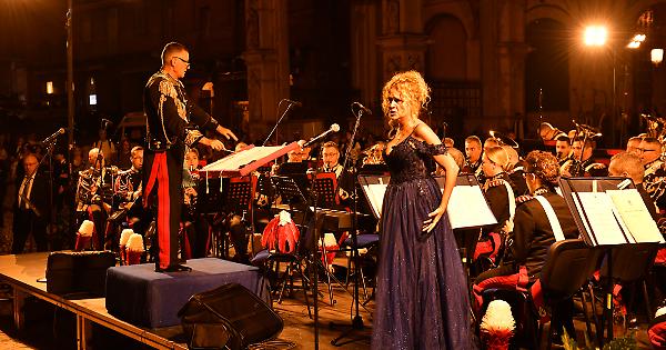 Il Concerto è poi continuato con l’esecuzione di alcune composizioni molto famose del ricco repertorio della Banda dell’Arma dei Carabinieri spaziando dall’operetta di Franz von Suppé, con Cavalleria Leggera, all’omaggio a Morricone, a Benny Goodman e poi a Verdi con l’esecuzione della notissima Marcia Trionfale dell’Aida. Grande successo anche per il soprano di fama internazionale Cristina Ferri, senese, che ha interpretato “Tu che m’hai preso il cor” e “Un bel dì vedremo”, e per il tenore Alessandro Fantoni, genovese, che si è esibito anche lui in prestigiosi palcoscenici in Italia e all’estero, con “Granada” e “Nessun Dorma”; entrambi hanno saputo esaltare l’esecuzione musicale della Banda.
