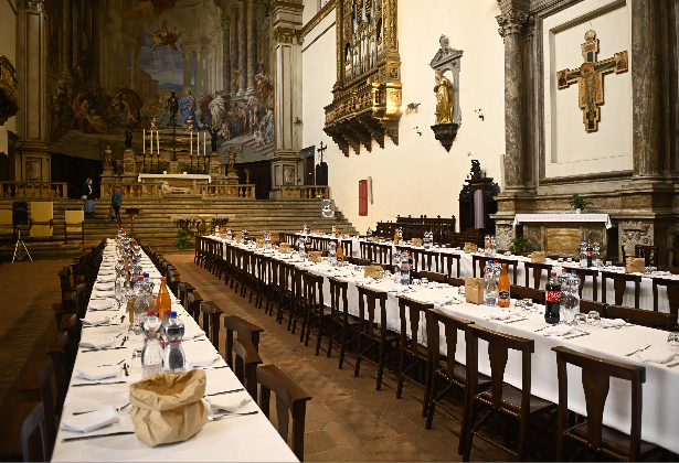 Tutti allo stesso tavolo. Volontari e persone fragili, che nella Giornata mondiale dei poveri sono stati ospitati per un pranzo solidale alla Santissima Annunziata. A fare gli onori di casa il cardinale Augusto Lojudice, che con orgoglio porta avanti questo momento di condivisione voluto da Papa Francesco. Il tocco dell’arcivescovo è nell’offrire uno spaccato differenze a chi ogni giorno presta volontariato. Un centinaio di persone per una volta commensali (più una cinquantina di soggetti fragili). Per dare loro un turno di riposo a servire sono stati chiamati giovani delle parrocchie senesi. Dietro questa iniziativa un aspetto richiamato dallo stesso Papa Leone e sottolineato anche da Lojudice: “Questa giornata assume valore, perché porta dietro il messaggio di ritornare sul tema della povertà non come un accessorio, cioè una pura assistenza, ma ma il cuore profondo del Vangelo, quindi ovviamente di ogni cristiano e di ogni credente”.
