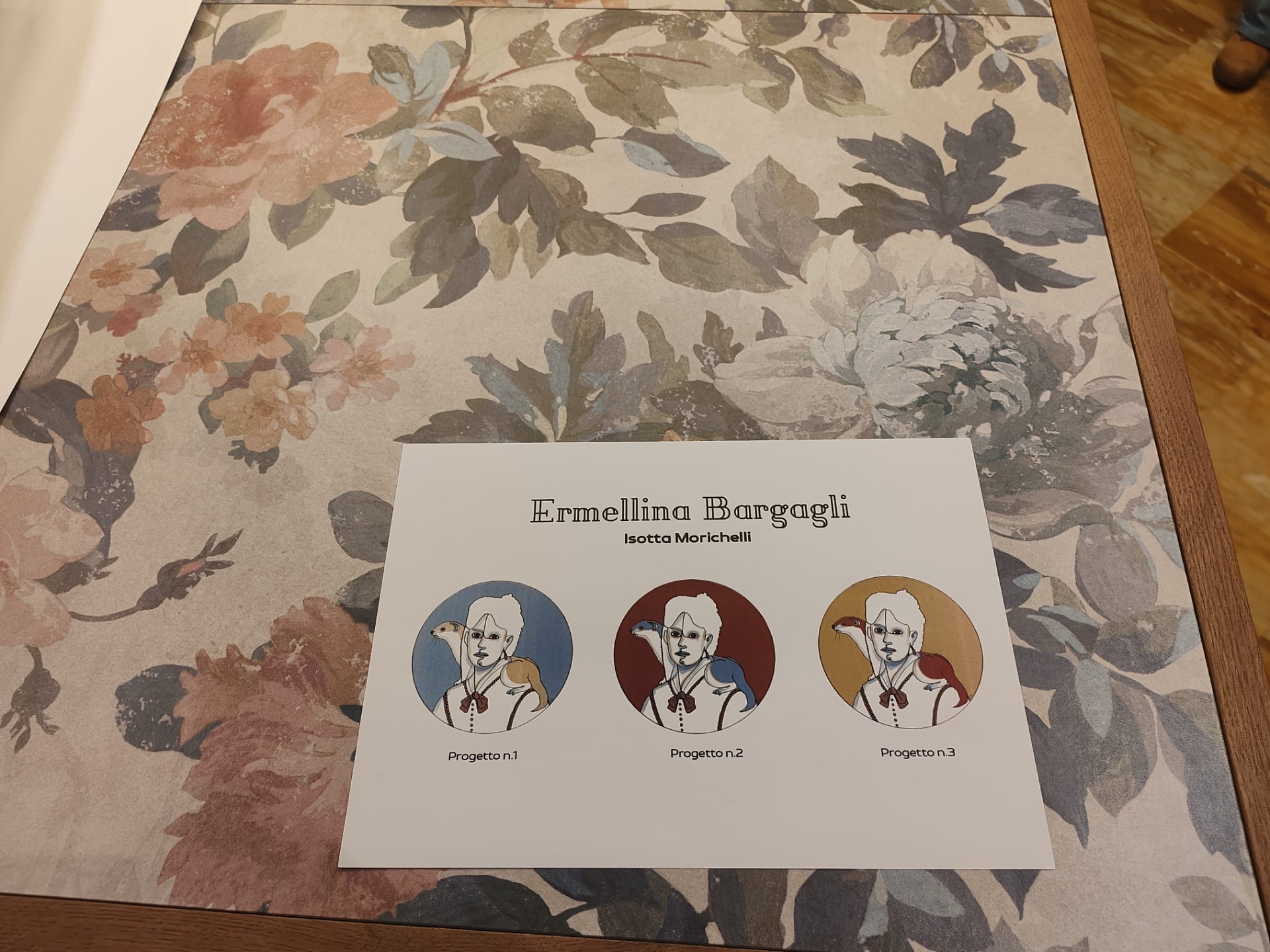 Le studentesse sono andate “fuori tema”, rispetto al soggetto indicato, ma hanno piacevolmente colpito ed entusiasmato la committenza con progetti davvero di livello: protagonista assoluta delle opere d’arte è stata la marchesa Ermellina Bargagli Stoffi, cui è intitolato l’hotel, colta nobildonna vissuta a Siena nella seconda metà dell’ottocento.