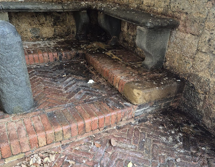 La sporcizia è cronica grazie a colonie di piccioni che qui dimorano senza sosta coprendo di escrementi pancali e pavimento e un'occupazione occasionale che di notte trasforma lo spazio in una dimora al riparo da controlli ed occhi indiscreti. Le nicchie sul muro sono utilizzate dai senzatetto come comodi armadietti per riparare i cartoni dall'umidità. In un angolo ci sono perfino un paio di scarponcini da trekking. Per non parlare del lato destro, un cantuccio utilizzato come gabinetto che inonda di cattivo odore tutta l'area circostante. Erbacce e rampicanti fanno il resto, rovinando il materiale lapideo che appena qualche anno fa subì un sostanzioso intervento di ripulitura. E gli affreschi restaurati a suo tempo sono oggi abbandonati nell'oscurità.