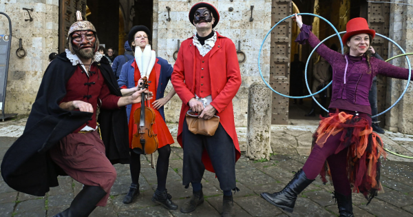 Goldoni ci ha insegnato che dietro ogni maschera c’è un essere umano pieno di desideri, contraddizioni e voglia di vivere. Questa rassegna è una giostra di teatro, musica e incontri, un grande gioco collettivo che trasforma la città in un palcoscenico e i cittadini in protagonisti”. Il grande gioco collettivo ha quindi appena preso il via in piazza del Campo. Vari appuntamenti sono in programma anche nei prossimi giorni, fino al martedì grasso. E varie sono le associazioni e le realtà coinvolte. Come l’Associazione I Topi Dalmata e l’Associazione SpettacoloSenzaMura, che con i Buskers ha realizzato giovedì lo spettacolo di danza, giocoleria e bolle di sapone. Ed è stato solamente l’inizio.
