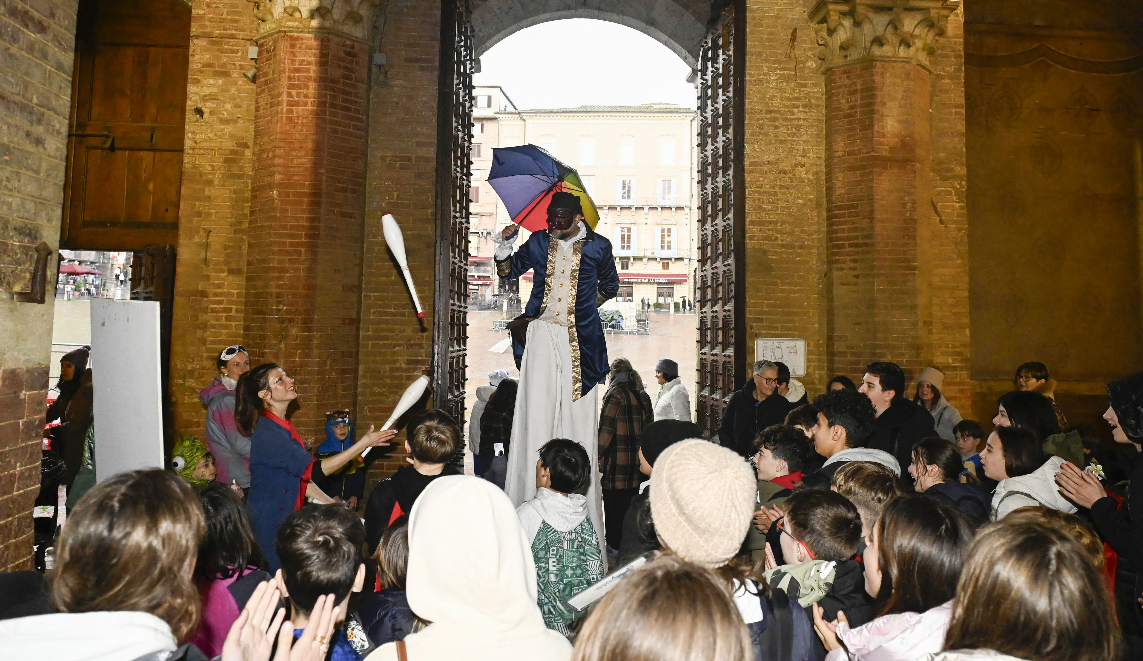 L’evento ha preso il via nella conchiglia senese, poi a causa della pioggia che nel pomeriggio ha colpito la città l’iniziativa si è spostata all’interno del Cortile del Podestà, dove i bimbi hanno continuato a giocare e si sono divertiti con le maschere presenti. La città ha vissuto, nonostante la pioggia, un pomeriggio di spensieratezza. Sorrisi, risate, urla di gioia dei bambini, divertimento dei piccoli, intenti a guardare pirati che tiravano di spada e personaggi visti e conosciuti nelle fiabe e nelle favole. Musica, teatro, danza e attività per tutte le età: un programma ricco e inclusivo, pensato per bambini, famiglie e cittadini, all’insegna del gioco, dell’arte e della condivisione.