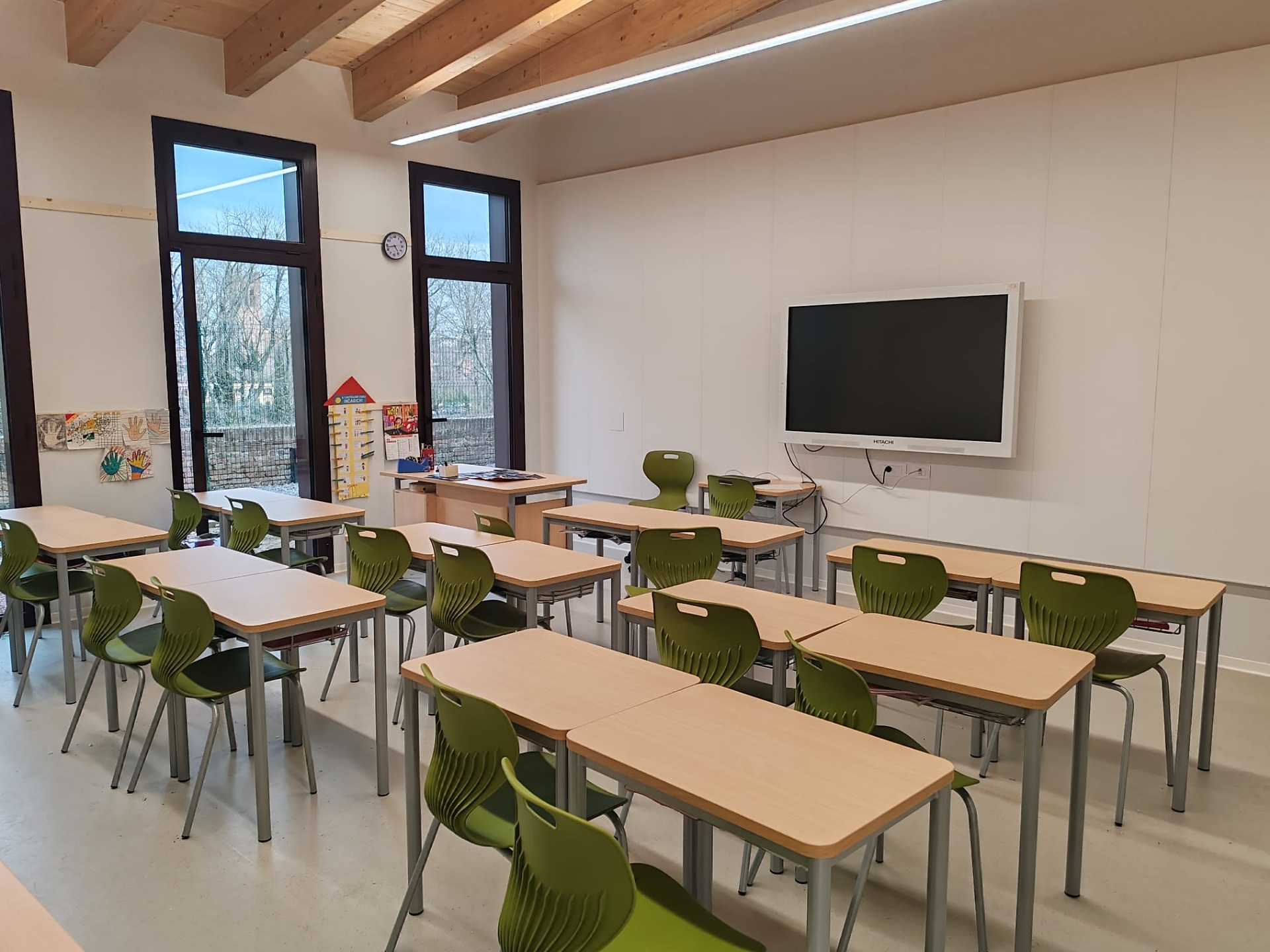 Una struttura nuova di zecca, leggera, moderna, che si incastona con delicatezza nel complesso della Fortezza: è la nuova scuola elementare “Achille Sclavo”, che aperta una settimana fa dopo un anno e mezzo di lavori (dal costo di 3,5 milioni con fondi Pnrr) è stata inaugurata ieri pomeriggio con una festa che ha coinvolto alunni e genitori, in mezzo a tanto entusiasmo. I piccoli studenti – dopo un “esilio” forzato alla Pascoli - hanno abbracciato un edificio costruito ex novo da un piano unico andato a rimpiazzare le casette che hanno fatto la storia della Sclavo, scuola cui sono legate intere generazioni di senesi. Prima del taglio del nastro, gli scolari hanno voluto omaggiare la nuova casa cantando tutti insieme una divertente canzone dal ritmo reggae, d’altronde stasera, nemmeno a farlo apposta, si appresta a iniziare Sanremo.