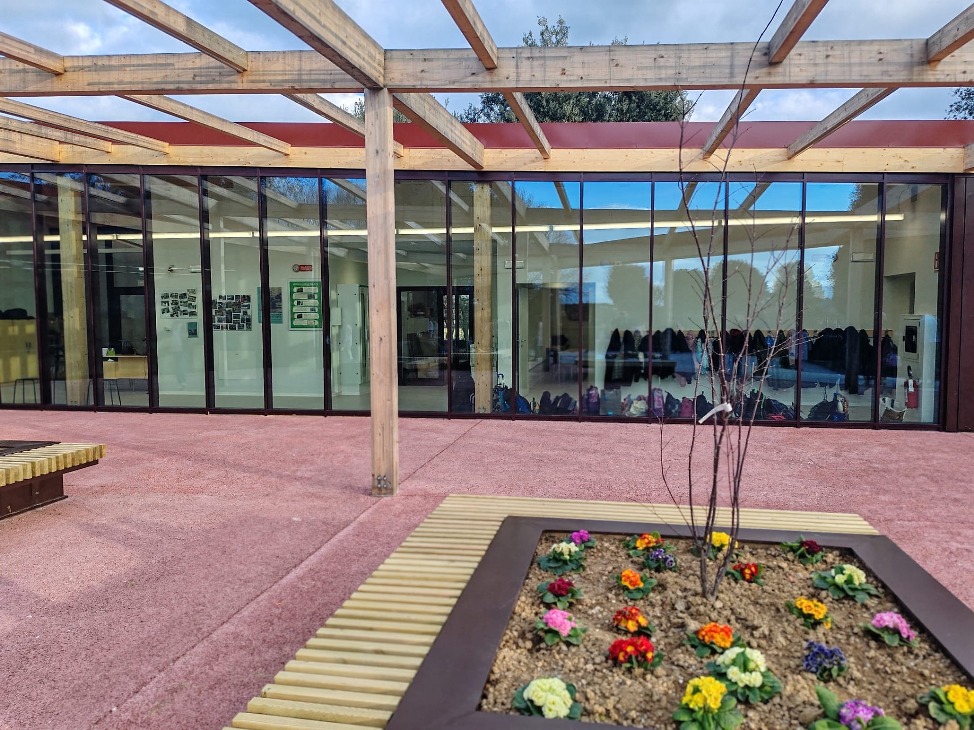 “La nuova scuola è bellissima” – ha detto con orgoglio un piccolo studente leggendo una lettera indirizzata all’assessore Lorenzo Lorè – è la più bella di Siena. E in effetti la struttura risulta azzeccata, mescolando innovazione tecnologica e design “svedese”, inserendosi piacevolmente nel maestoso contesto della Fortezza Medicea. La superficie totale è di 2.696,30 metri quadrati, col progetto che ha voluto disegnare gli spazi creando una sorta di piazza all’ingresso, una “agorà”, sulla quale si rivolgono tutte le funzioni collettive della scuola, come l'ingresso, la mensa, l'aula per le attività integrative e il sistema di distribuzione. Particolare è anche la copertura: un grande tetto a tre falde inclinate, che alterna parti piene a porzioni permeabili e pergolati.