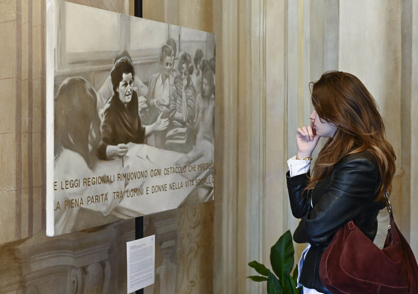 Orgoglio ed emozione da parte dell’artista, Antonella Cinelli, che ha lavorato con una particolare tecnica che prevede l’uso di acquaragia, lavora per sottrazione, facendo emergere dal fondo i ritratti. “Ho sentito il bisogno – ha dichiarato - di omaggiare le donne, con un lavoro corale, costruito passo dopo passo. Nei dipinti ho inserito anche i testi della Costituzione sulla parità di genere, in polvere metallica: parole dorate che appaiono e scompaiono”.