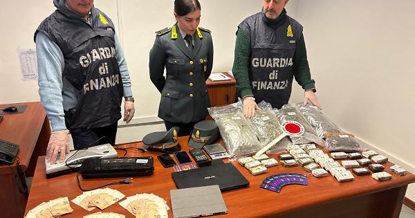 Operazione anti droga della Guardia di Finanza di Siena, che ha sequestrato 5,5 chili tra marijuana e hashish, materiale per il confezionamento delle dosi e 2.100 euro in contanti ed arrestato un italiano di 25 anni, dipendente di un istituto scolastico senese, colto in flagranza di reato e ora ai domiciliari nella sua regione d'origine.
