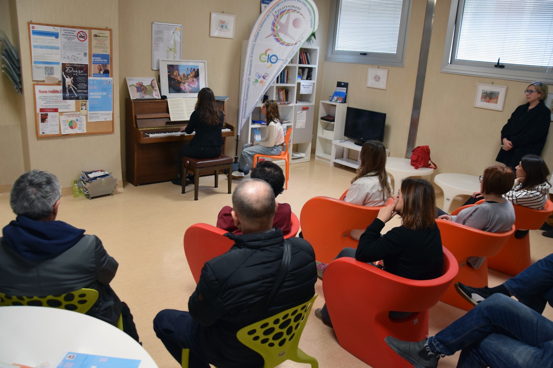 Dopo il primo concerto tenuto da Federica Pasquarelli, nella sala d'attesa del reparto situata al lotto 1 piano -3 si sono esibite al pianoforte Marta Ricciardi con “Giugno” da Le Stagioni e “Dumka” di Pyotr Ilyich Tchaikovsky, e Barbara Luzi con “Claire de Lune” di Claude Debussy e con la “Pastorale” di Ludwig van Beethoven, per concludere a quattro mani con “La bella addormentata” di Tchaikovsky.