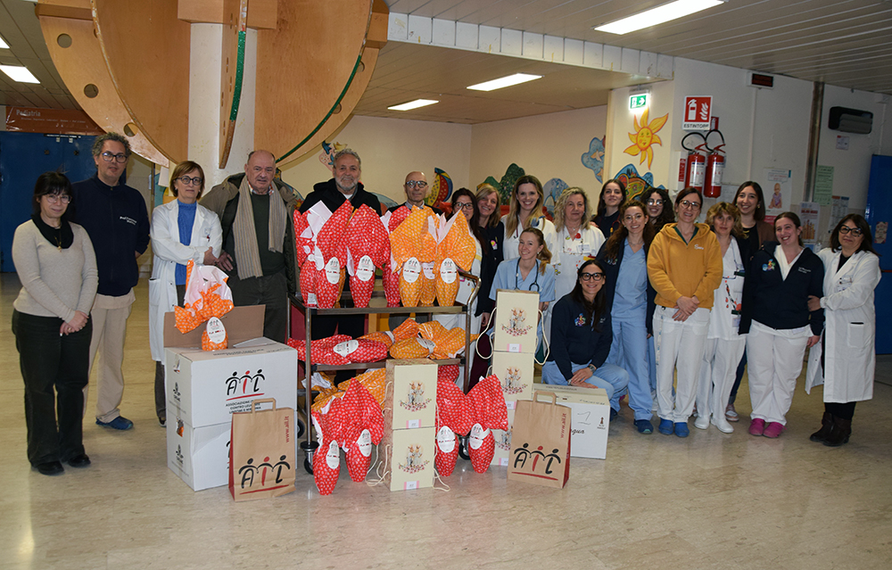 Non solo il buon cuore dei tifosi. Grazie al ricavato delle vendite di beneficenza della Biblioteca ospedaliera, gestita da AVO (Associazione Volontari Ospedalieri) e AUSER Siena, e al contributo di AIL Siena-Grosseto, sono state donate le colombe e le uova di cioccolato alle bambine e ai bambini ricoverati all’ospedale di Siena. Presenti alla consegna i presidenti di AVO e AIL Siena-Grosseto, Daniele Poggialini e Piero Franceschini, insieme alla segretaria di AIL Siena-Grosseto, Raffaella Ruscitto, per un’iniziativa doppiamente benefica: offrire un dolce momento di serenità ai piccoli degenti e alle loro famiglie e, contemporaneamente, sostenere la ricerca scientifica grazie alle uova solidali di AIL.