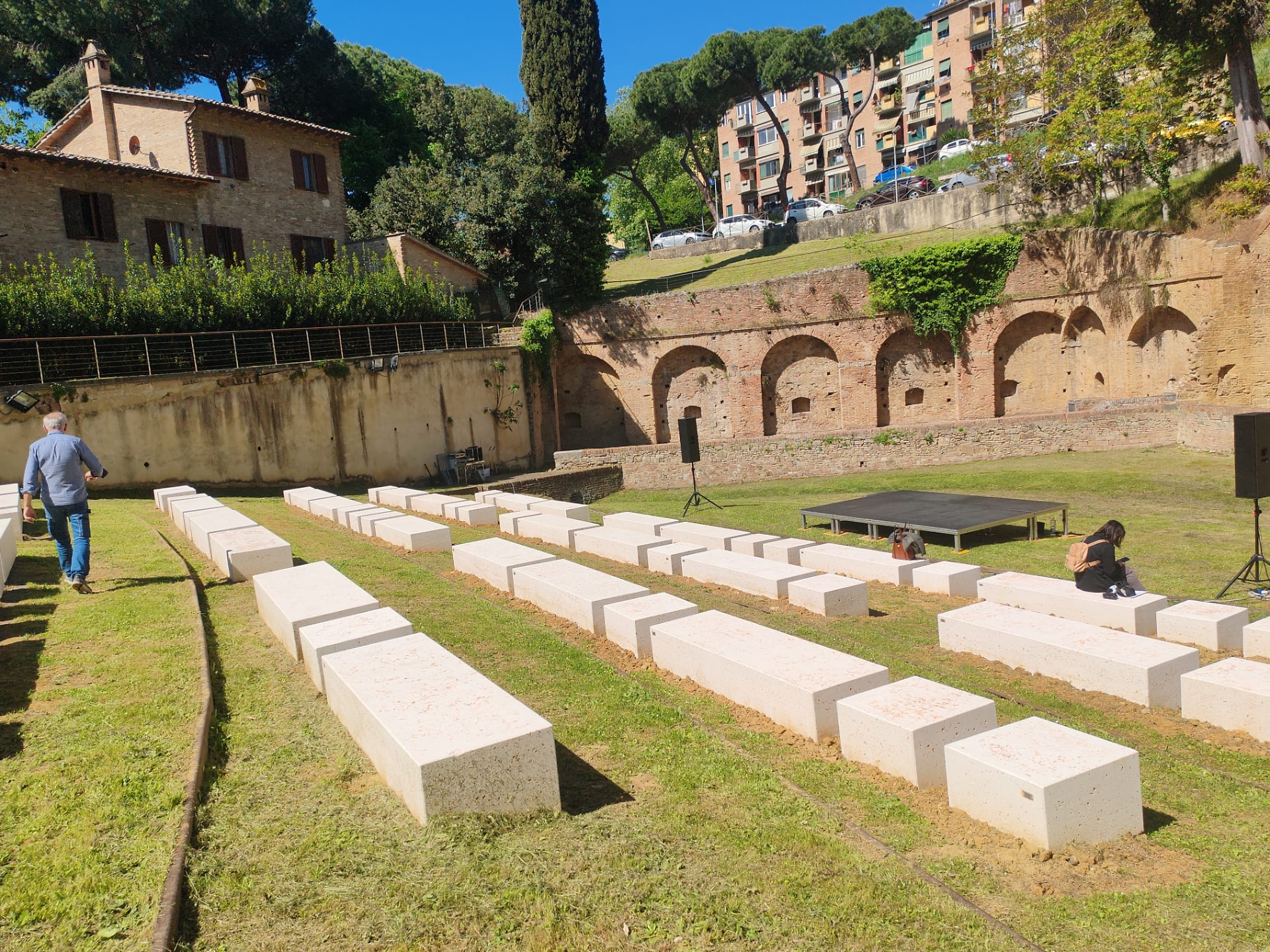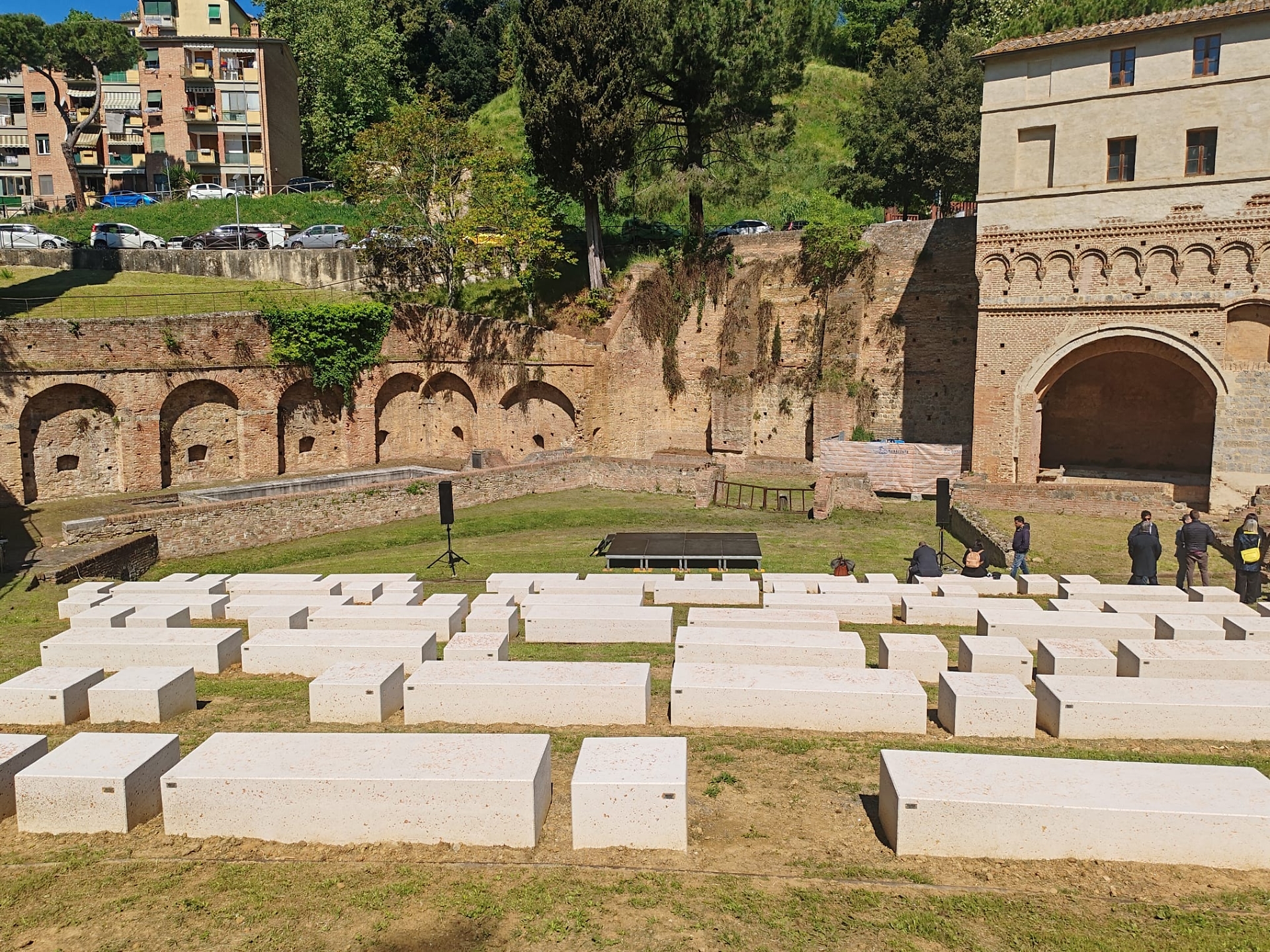 L’idea progettuale nasce dalla volontà di inserirsi in un contesto di grande valore paesaggistico senza stravolgerne l’identità, ma valorizzandolo attraverso un intervento leggero e rispettoso. Le sedute evocano le antiche gradonate dei teatri in pietra: elementi monolitici che emergono dal verde e scandiscono i terrazzamenti con un ritmo naturale e non rigidamente ripetitivo, in dialogo con la stratificazione storica del sito. L’investimento complessivo è di circa 60mila euro. La progettazione e la direzione dei lavori sono stati curati dall’Architetto Stella Pantella e dalla Direzione Opere Pubbliche ed Opere Pnrr, Manutenzioni del Comune di Siena.
