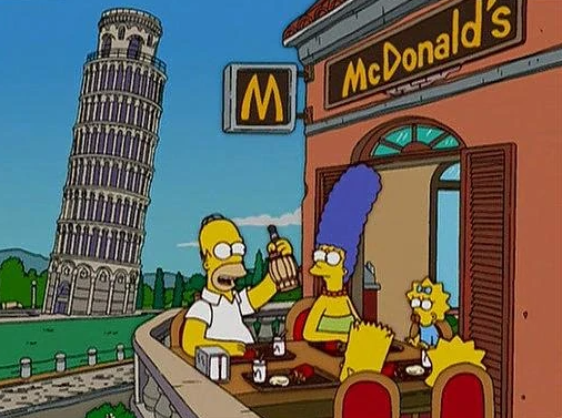 L’episodio è un concentrato di citazioni e stereotipi italiani, ma sempre con ironia e affetto: dalla gigantesca forma di mortadella che colpisce l’auto dei Simpson, alla festa di paese, fino al vino locale che fa ubriacare Lisa e svela il segreto di Bob, scatenando un inseguimento che attraversa tutta la penisola fino a Roma. Qui non manca un cameo di Krusty il Clown, coinvolto in un traffico illecito di reperti storici, un dettaglio che aggiunge pepe e ritmo alla narrazione.