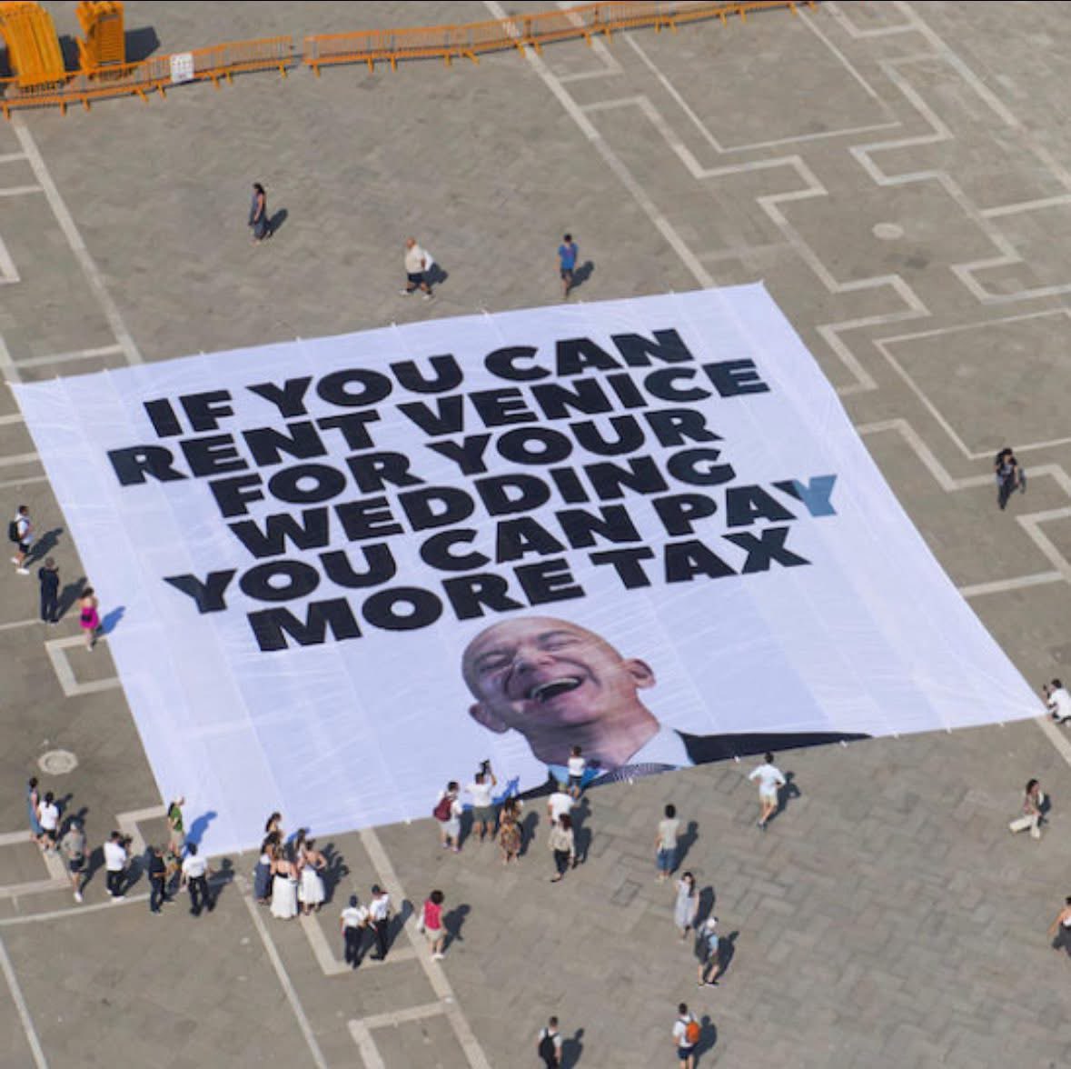 Le critiche mosse dagli attivisti non si sono limitate alla mera ostentazione di ricchezza. Il matrimonio di Bezos è stato visto come il simbolo di una crescente disparità tra chi detiene ricchezza estrema e chi invece vive in condizioni precarie. Il fatto che Venezia, città fragile e già sotto pressione per il turismo di massa, abbia ospitato un evento così sfarzoso ha scatenato l’ira di molti residenti e gruppi locali, che denunciano come le esigenze della popolazione vengano spesso ignorate in favore di eventi esclusivi e business turistici.