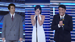 Carlo Conti e Laura Pausini con l'ultracentenaria Gianna Pratesi