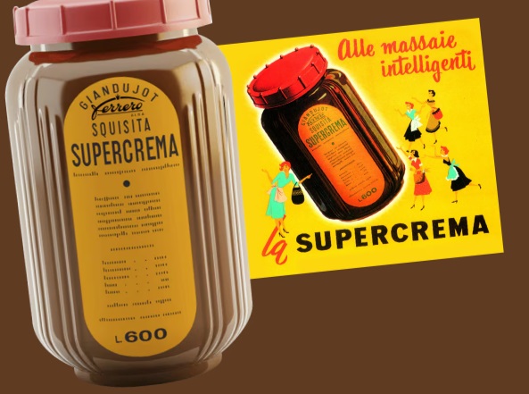 Nutella è un marchio di successo da oltre 60 anni. Nacque infatti nel 1964 per un’intuizione dell’industria dolciaria piemontese Ferrero, a partire da una precedente crema chiamata Pasta Giandujot o Giandujot, ideata da Pietro Ferrero nel secondo dopoguerra per ovviare alla scarsità e al costo elevato del cacao. Questa pasta dolce, a base di nocciole delle Langhe, zucchero e poco cacao, veniva venduta in blocchi da taglio da spalmare sul pane. Nel 1951 il prodotto evolse in Supercrema, una crema più morbida e spalmabile venduta in barattoli.