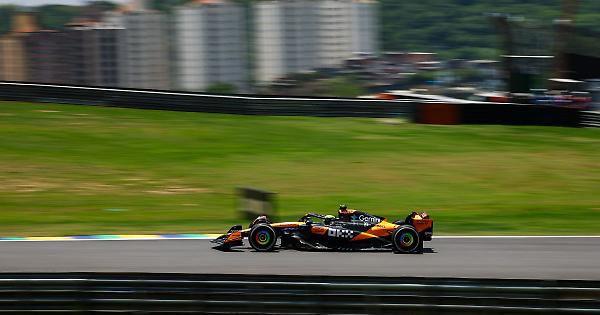 SAN PAOLO (BRASILE) (ITALPRESS) - Lando Norris conquista la pole position nella sprint del Gran Premio del Brasile 2025. Il leader del Mondiale, grazie al tempo di 1'09"243, scatterà dalla prima casella nell'appuntamento previsto domani alle 15 italiane sul circuito di Interlagos. Al suo fianco ci sarà un ottimo Andrea Kimi Antonelli su Mercedes (+0"097), terza l'altra McLaren di Oscar Piastri (0"185). Quarto crono per George Russell con la seconda Mercedes, a 0"252 dal connazionale, mentre Max Verstappen (Red Bull) è solo sesto dietro a Fernando Alonso, con un ritardo di 0"337 dal primo posto. La Ferrari di Charles Leclerc non va oltre l'ottava piazza alle spalle dell'altra Aston Martin di Lance Stroll; Isack Hadjar (Racing Bulls) e Nico Hulkenberg (Kick Saubert) completano la top 10. Eliminato nella seconda manche Lewis Hamilton con l'altra Rossa: scatterà undicesimo. - foto Ipa Agency - (ITALPRESS). xq6/glb/red 07-Nov-25 20:24