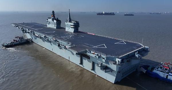 SHANGHAI (CINA) (ITALPRESS/XINHUA) - La prima nave d'assalto anfibia Type 076 della Cina, la PLANS Sichuan, salpa dal porto della Hudong-Zhonghua Shipbuilding (Group) Co., Ltd. a Shanghai, nella Cina orientale, il 14 novembre 2025. La nave è salpata da Shanghai nella mattina di venerdì per condurre la sua prima missione di test di navigazione. La prova in mare si concentrerà sul testare e verificare l'affidabilità e la stabilità dei sistemi di alimentazione, elettrici e di altro tipo della nave. (ITALPRESS). -Foto Xinhua- mec/lcr/red 14-Nov-25 17:44