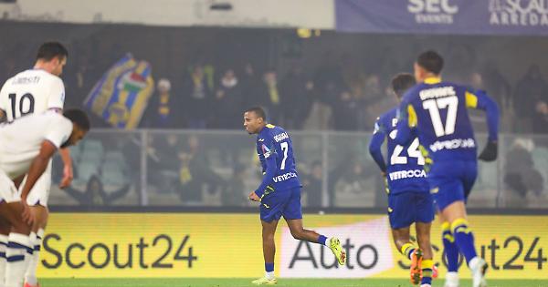VERONA (ITALPRESS) - Prima vittoria in campionato per il Verona che batte l'Atalanta 3-1 grazie alle reti di Belghali, Giovane e Bernede, inutile il calcio di rigore trasformato da Scamacca. Vittoria fondamentale in chiave salvezza per gli scaligeri, seconda sconfitta per Palladino da quando siede sulla panchina degli orobici. Quarto ko in campionato per De Roon e compagni che prima del Cagliari dovranno affrontare il Chelsea. L'Hellas, invece, sfiderà la Fiorentina. Il Verona ha iniziato spingendo sull'acceleratore, nonostante l'emergenza a centrocampo - assente Gagliardini per squalifica e Bradaric per infortunio - i padroni di casa sono riusciti a creare parecchi problemi a un'Atalanta scarica a causa delle fatiche accumulate in Coppa Italia. La squadra di Zanetti, arrivata al match in difficoltà, ha aggredito la Dea trovando spazi soprattutto in ripartenza: i bergamaschi sono riusciti inizialmente a gestire la sfuriata, De Ketelaere al 26' ha sfiorato la rete con un tiro dal limite. Due minuti più tardi Belghali, servito in area da un colpo di tacco di Mosquera, ha sbloccato il risultato. Al 36' ci ha pensato Giovane, sugli sviluppi di una rimessa laterale, a segnare il 2-0 con una conclusione violenta dal limite. Timida la reazione da parte della squadra di Palladino, la conclusione di Krstovic è stata bloccata senza patemi da Montipò. Nella ripresa Palladino ha mescolato le carte mandando in campo Scamacca e Kolasinac al posto rispettivamente di Krstovic e Kossounou: De Ketelaere, dopo appena 4 minuti, ha sfiorato la rete, decisivo il salvataggio sulla linea di Montipò. Nella parte centrale i nerazzurri hanno fatto parecchia fatica, su un dribbling di Samardzic gli ospiti hanno chiesto un calcio di rigore, sull'azione successiva è arrivato il 3-0 di Bernede (26'st): dopo una revisione il Var ha confermato che non c'è stato tocco di mano di Bella-Kotchap. Dieci minuti più tardi su un tiro di Scamacca, ancora Bella-Kotchap ha colpito la palla con la mano, dopo l'on field review Mariani ha assegnato il rigore trasformato poi dal numero 9. Inutili gli assalti finali, vince il Verona che porta a casa la prima vittoria del campionato e lascia l'ultimo posto alla Fiorentina. - Foto Ipa Agency - (ITALPRESS). pia/ari/red 06-Dic-25 22:49