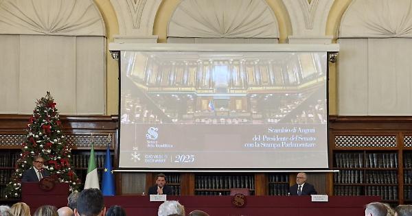 ROMA (ITALPRESS) - Dai rapporti tra Stati Uniti ed Europa alle riforme, in primis la legge elettorale ma anche il referendum sulla giustizia e una nuova proposta per ridurre il sovraffollamento delle carceri: sono i temi toccati dal presidente del Senato, Ignazio La Russa, alla cerimonia dello Scaldino per il tradizionale scambio di auguri con la stampa parlamentare. "I rapporti tra UE e Usa devono essere facilitati. C'è bisogno di ponti, di tentativi di trovare intese. Credo che il governo e l'Italia, più di altre nazioni, possano svolgere questo ruolo di attenuazione dei contrasti che potrebbero costituire un danno irreversibile per l'Europa e l'Italia stessa": una possibile rottura tra le due sponde atlantiche "sarebbe dannosissima", ribadisce La Russa, secondo cui "la priorità di Meloni è l'interesse dell'Italia e nell'interesse dell'Italia c'è il rafforzamento dell'Unione Europea e il mantenimento dei rapporti il più possibile stretti con gli Stati Uniti: questa non è un'ipotesi, è una certezza". Eppure, ricorda, "la mia parte politica ha sempre affermato che l'Europa debba crescere, pensare meno a cosa che i singoli Stati possono fare da sé e più a temi come politica industriale", ma sulla difesa "questa critica all'Europa l'ha sempre fatta, di essere troppo supina. Niente si fa gratis: se io mi accollo la tua difesa, è evidente che poi ho un'influenza anche sulla tua politica", sottolinea La Russa. Sulle posizioni dei partiti di maggioranza sul conflitto in Ucraina, sollecitato dai cronisti che gli chiedevano di commentare le parole del vicepremier Matteo Salvini, La Russa precisa: "Meloni ha risposto che si può dare i soldi all'Ucraina senza toglierli alla sanità. Risolto il problema Salvini". Tra lui e Meloni, comunque, "ho sempre visto un rapporto molto forte: anche quando le dichiarazioni pubbliche appaiono differenti, sappiate che poi il rapporto personale consente di trovare soluzioni", ribadisce il presidente del Senato. Il referendum sulla giustizia "non avrà conseguenze drastiche", sottolinea. Il paragone con quello che successe a Renzi "non c'è. Renzi è un caso a parte perché decise liberamente di legare la sua sorte al referendum, convinto di vincere. Esattamente l'opposto di quello che fa il governo attuale". Poi, "se volessimo legare il risultato" del referendum al governo e, "nel caso in cui il referendum fallisse, dovremmo chiedere le dimissioni dei leader dell'opposizione? Non lo pretenderemo". Sulla legge elettorale, aggiunge, "ho sempre detto che spero che avvenga col concorso di tutti". Le opposizioni accusano la maggioranza di volere "l'uomo solo al comando e contemporaneamente dicono 'tanto vinceremo noi'. O l'una o l'altra. Se pensi di vincere, non puoi accusare Meloni di volere le riforme per comandare", sottolinea. La legge premierebbe chi vince con un voto in più. Allora vuol dire che non sono sicuri di vincere?", sottolinea. Per quanto riguarda il ballottaggio, "dipende dal tipo di assetto costituzionale che c'è, ma a me non spaventa. Lo farei anche quando, superato il 40%, ci fosse una distanza minima tra i due primi due arrivati, anche se hanno superato il limite per il premio di maggioranza". Infine, rilancia sul sovraffollamento delle carceri. "Ogni volta che ho fatto una proposta sui detenuti ho avuto uno schiaffo in faccia, ma non metto la testa sotto la sabbia. C'è un'altra strada: facciamo una norma che allarghi i criteri degli arresti domiciliari, anche subito, prima di Natale Aumentiamo i giudici di sorveglianza con norme temporanee". (ITALPRESS). -Foto xi2/Italpress- xi2/ads/red 11-Dic-25 15:35