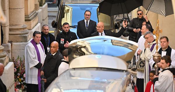 ROMA (ITALPRESS) - Si sono svolti a Saint-Tropez i funerali di Brigitte Bardot, scomparsa il 28 dicembre 2025 all'età di 91 anni. La cerimonia si è svolta nella chiesa Notre-Dame-de-l'Assomption nel cuore della cittadina costiera. La famiglia ha scelto un rito sobrio, alla presenza di parenti, amici e rappresentanti della Brigitte Bardot Foundation per la protezione degli animali, l'organizzazione che l'attrice aveva fondato e sostenuto per decenni. Mentre la cerimonia religiosa è stata privata, la città ha predisposto maxischermi nel porto e nelle piazze affinché cittadini e ammiratori potessero seguire il rito e rendere omaggio all'attrice. Ad accompagnare l'uscita delle spoglie, Chico, il cantante dei Gipsy Kings, che ha interpretato 'Djobi Djoba'. Tra i politici presenti, Marine Le Pen, Nicolas Dupont-Aignan e la ministra per le Pari opportunità, Aurore Bergé. Al termine della cerimonia, si è tenuta una processione dietro al feretro in direzione del cimitero marino di Saint-Tropez, che si affaccia sul mare. -foto Ipa Agency - (ITALPRESS). mgg/red 07-Gen-26 15:01