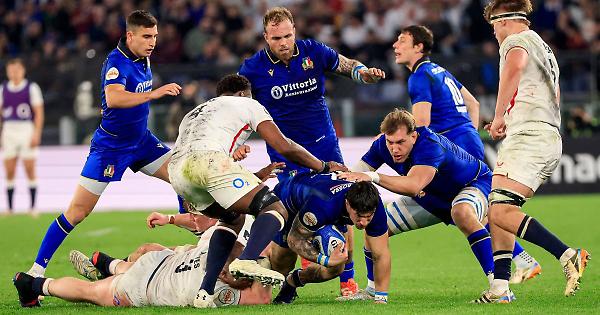 ROMA (ITALPRESS) - L'Italia ha battuto l'Inghilterra 23-18 nel match disputato all'Olimpico di Roma e valido per la 4a giornata del Sei Nazioni. E' la prima volta che gli azzurri battono l'Inghilterra. Il primo tempo si era chiuso sul 12-10 per gli ospiti. Due mete a testa: per l'Italia di Menoncello (primo tempo), mvp del match, e Marin (secondo tempo), per gli inglesi di Freeman e Roebuck entrambe nei primi 40'. Presenti sugli spalti poco meno di 70.000 spettatori. - foto Ipa Agency - (ITALPRESS). gm/red 07-Mar-26 19:39