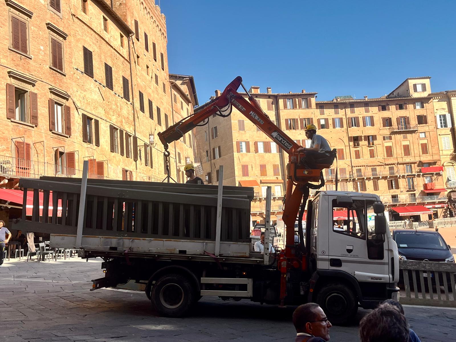Cresce l’attesa per il Palio dell’Assunta: Piazza del Campo ha iniziato a vestirsi a festa per la Carriera del 16 agosto. Le prime operazioni hanno visto il montaggio degli steccati e dei varchi di uscita, primo passo per la messa in sicurezza e l’organizzazione del Campo. A breve sarà la volta dei palchi e, il 9 e 10 agosto, la posa del tufo. Il calendario degli appuntamenti prosegue serrato: domani e dopodomani sono in programma le previsite veterinarie alla clinica del Ceppo a Monteresi. Il 10 agosto, alle ore 19, presentazione ufficiale del Drappellone realizzato dall’artista Francesco De Grandi.