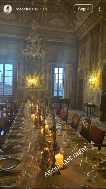 Niente balli sfrenati, ma una bellissima cena esclusiva preparata dallo chef Luca Ciaffarafà alla presenza di musicisti ed un pianoforte posizionato all’interno dello splendido Salone delle Feste del Continental - riservato per l’occasione - che ha fatto da sottofondo alla festa ed animato la serata con il coinvolgimento della popstar. Secondo alcune indiscrezioni, tra le portate sono stati ordinati, tra gli altri, il “risotto all’ortica, scaglie di tartufo estivo, mantecato con olio evo e non formaggio di anacardi” e come secondo “sinfonia di zucca e zucchini, ricotta vegana e confettura di finocchi”. Non sono mancati i classici ricciarelli e i vini rossi locali, a sottolineare l’omaggio alla tradizione senese.