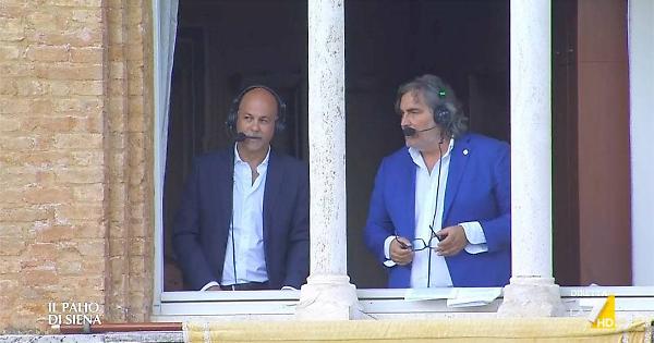 “È davvero una fatica, perché sono un contradaiolo viscerale. È sempre difficile non far trasparire le proprie passioni, anzi, a volte è impossibile. Perché un senese, soprattutto un contradaiolo vero, vive il Palio in modo molto intenso. Come diceva Tambus, non tutti sono contradaioli autentici, ma io lo sono anche troppo. Quindi devo cercare, per quanto possibile, di essere neutrale nel commento, ma è impossibile essere totalmente distaccati: si sente, a volte, magari anche solo nel tono di voce, nell’umore, nell’ansia che cresce nei momenti cruciali. Pierluigi questo l’ha capito dal primo Palio, quindi mi vede quando sono più teso. Ad esempio, quando lo scorso luglio non correvano né la Chiocciola né la Tartuca, devo dire che è stato anche divertente, per quanto il Palio sia sempre una cosa che genera tensione, emozione e pathos. Quindi è difficile, ma lo si sa già da prima.”