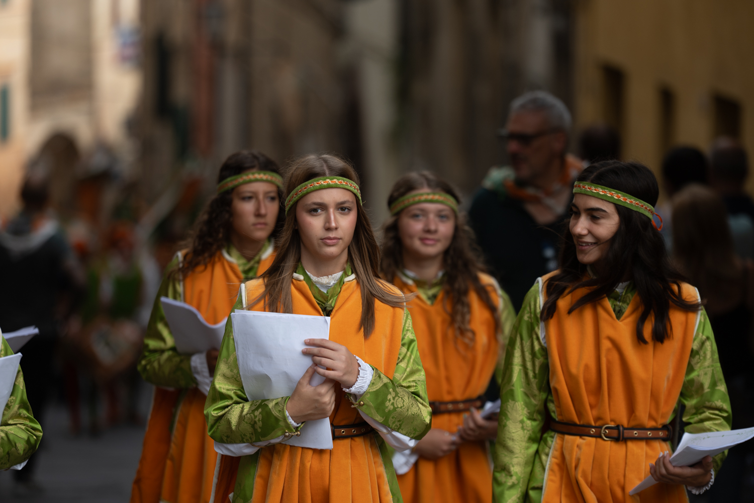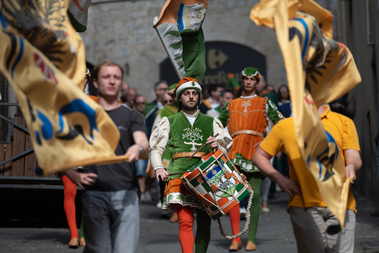 Momento di festa per la Contrada della Selva, che ieri ha girato per le vie e le strade della città. Già andati in archivio i battesimi, che come da tradizione erano stati effettuati il 15 agosto, giorno di Maria Assunta, con venti nuovi contradaioli, tutti minorenni, entrati a far parte del rione di Vallepiatta.