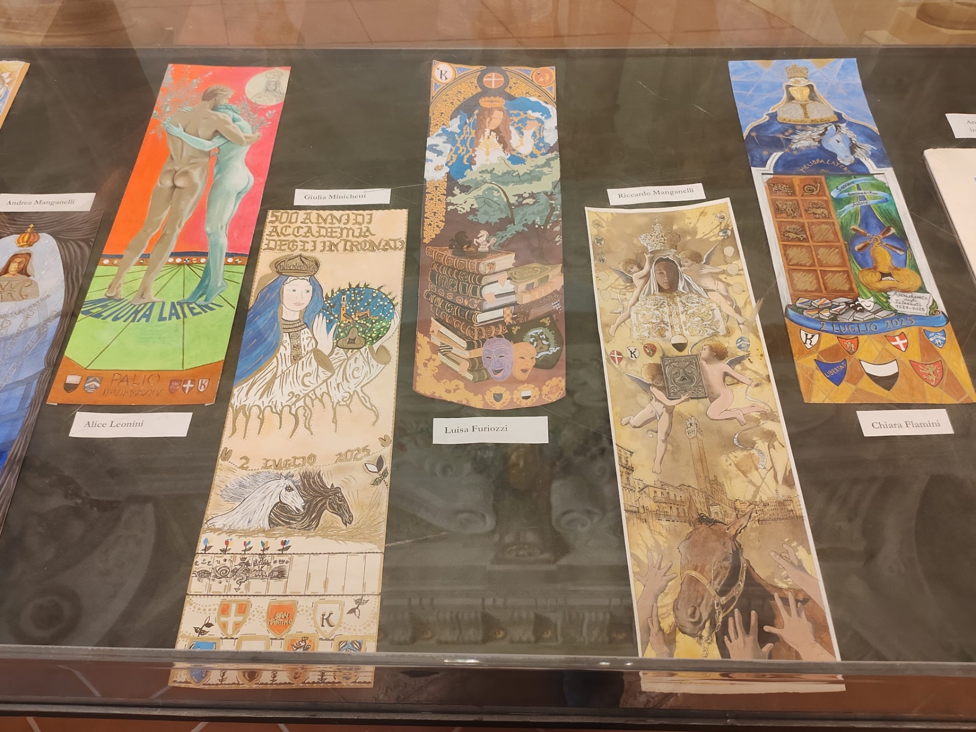 “Attraverso queste opere – ha commentato il sindaco di Siena Nicoletta Fabio – possiamo toccare con mano l’energia creativa animata dall’amore per la nostra Festa. Ogni bozzetto racconta una storia, una scelta, un’intuizione. È un frammento di Palio, ma anche un atto d’amore verso la nostra città. L’idea della mostra è nata un po’ per caso, una forma di reciproca valorizzazione. La partecipazione al bando è stata grande, significa che ha colto nel segno”.