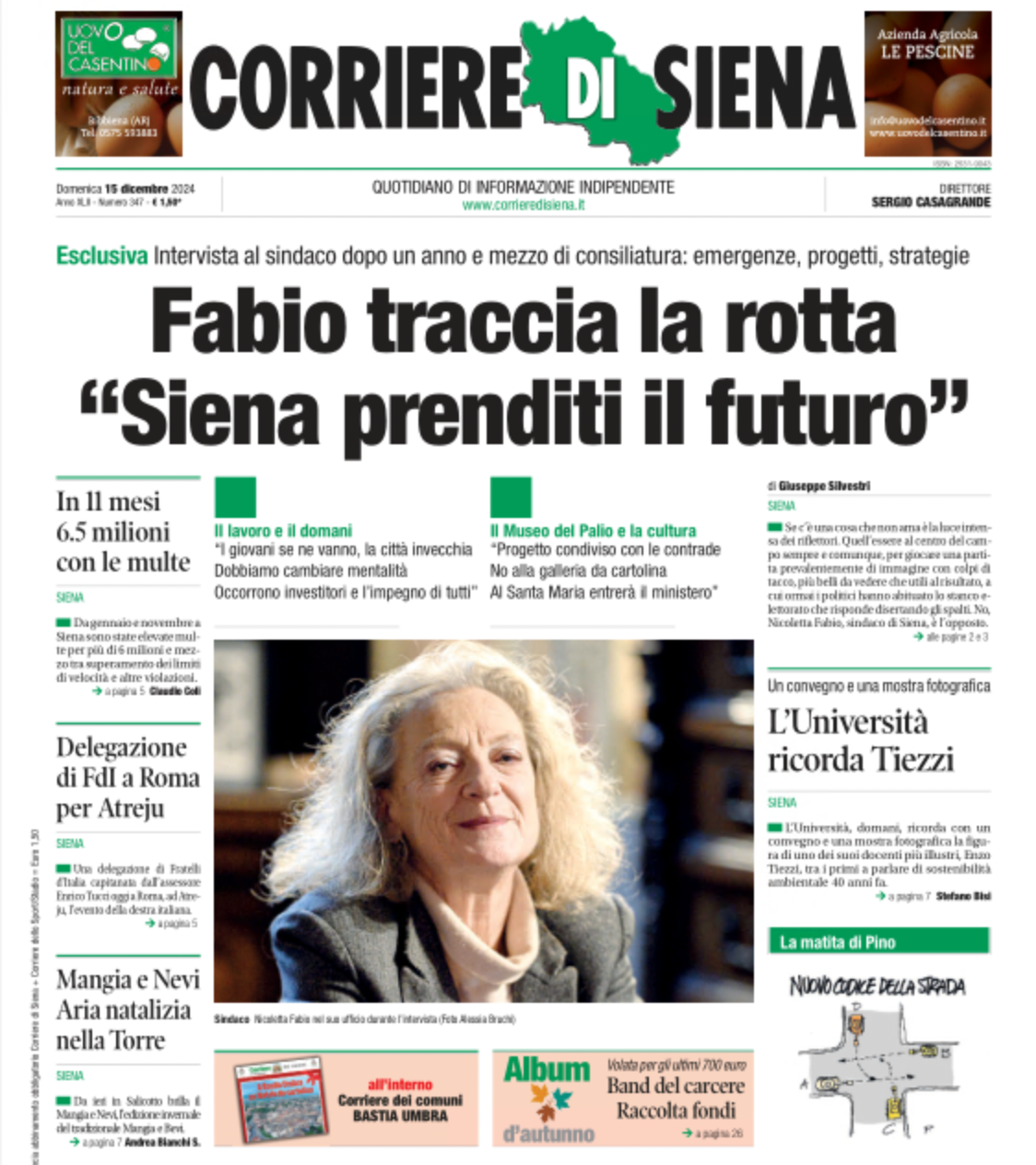 La prima pagina del Corriere di Siena di domenica 15 dicembre