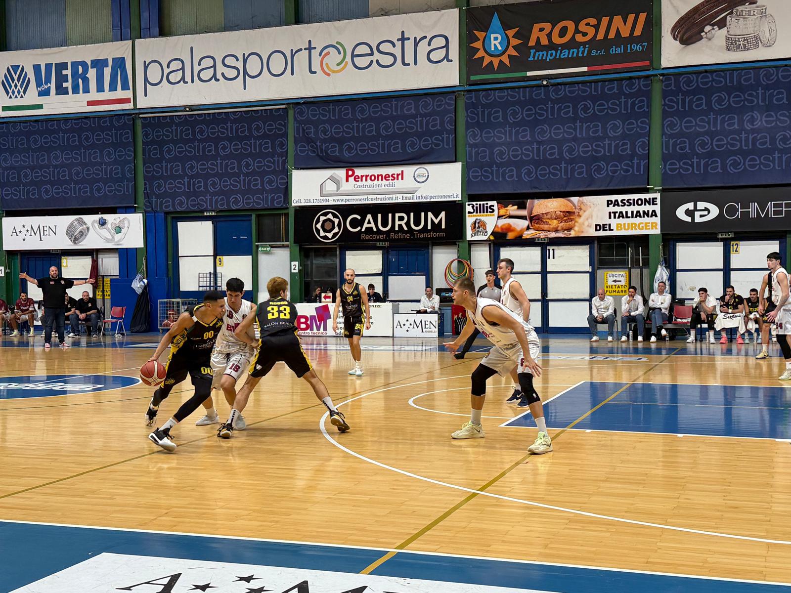 A firmare i primi punti è Cazzanti, a cui risponde Ballabio. Il primo vantaggio senese arriva con il gioco da tre punti di Masciarelli, che vale il 6-7. I tiri dalla lunga distanza di Cazzanti e Corradossi portano gli aretini sul +5, ma Siena si arma di pazienza: prima pareggia con Nannipieri e con la super schiacciata di Masciarelli, poi, grazie alla tripla dello stesso Masciarelli e al canestro di Rosso, vola sul +4. I gialloverdi chiudono il primo quarto avanti 16-22. Nella seconda frazione De Marchi firma subito il +8. I locali accorciano, ma la tripla di Zeneli e i canestri di Nannipieri e Masciarelli valgono il +10 con 3’ da giocare. Gli amaranto riescono a tornare sul -7 a metà gara.