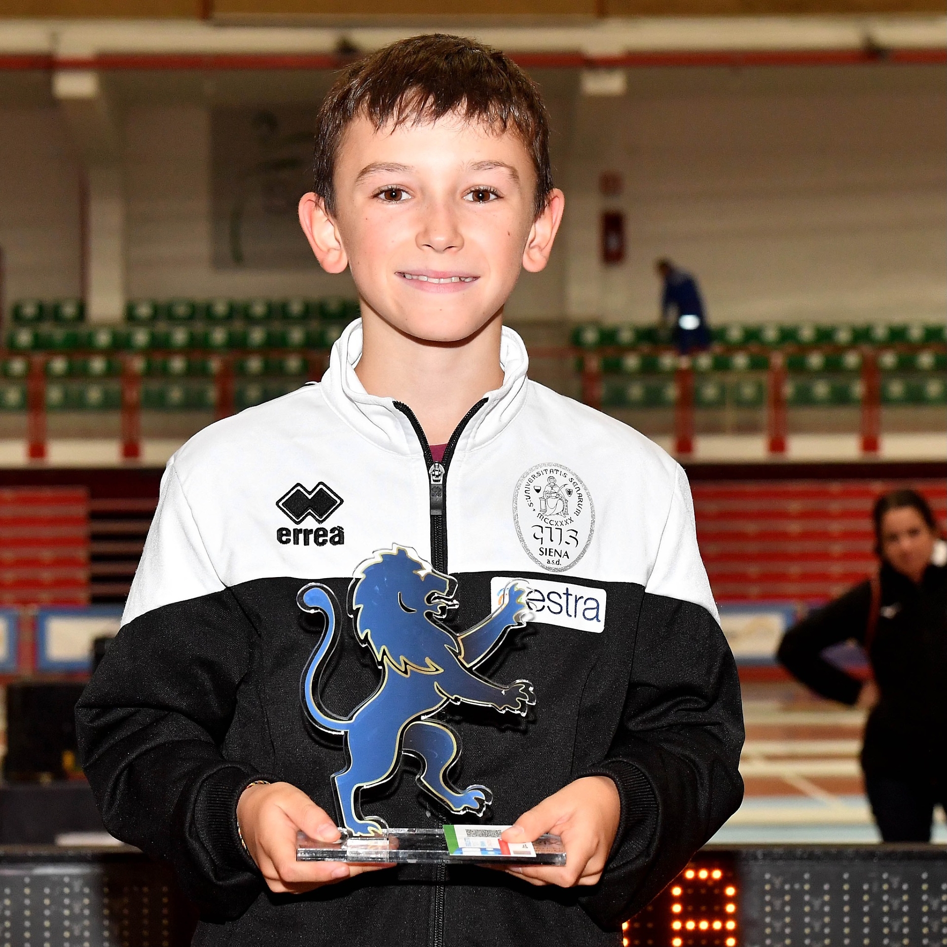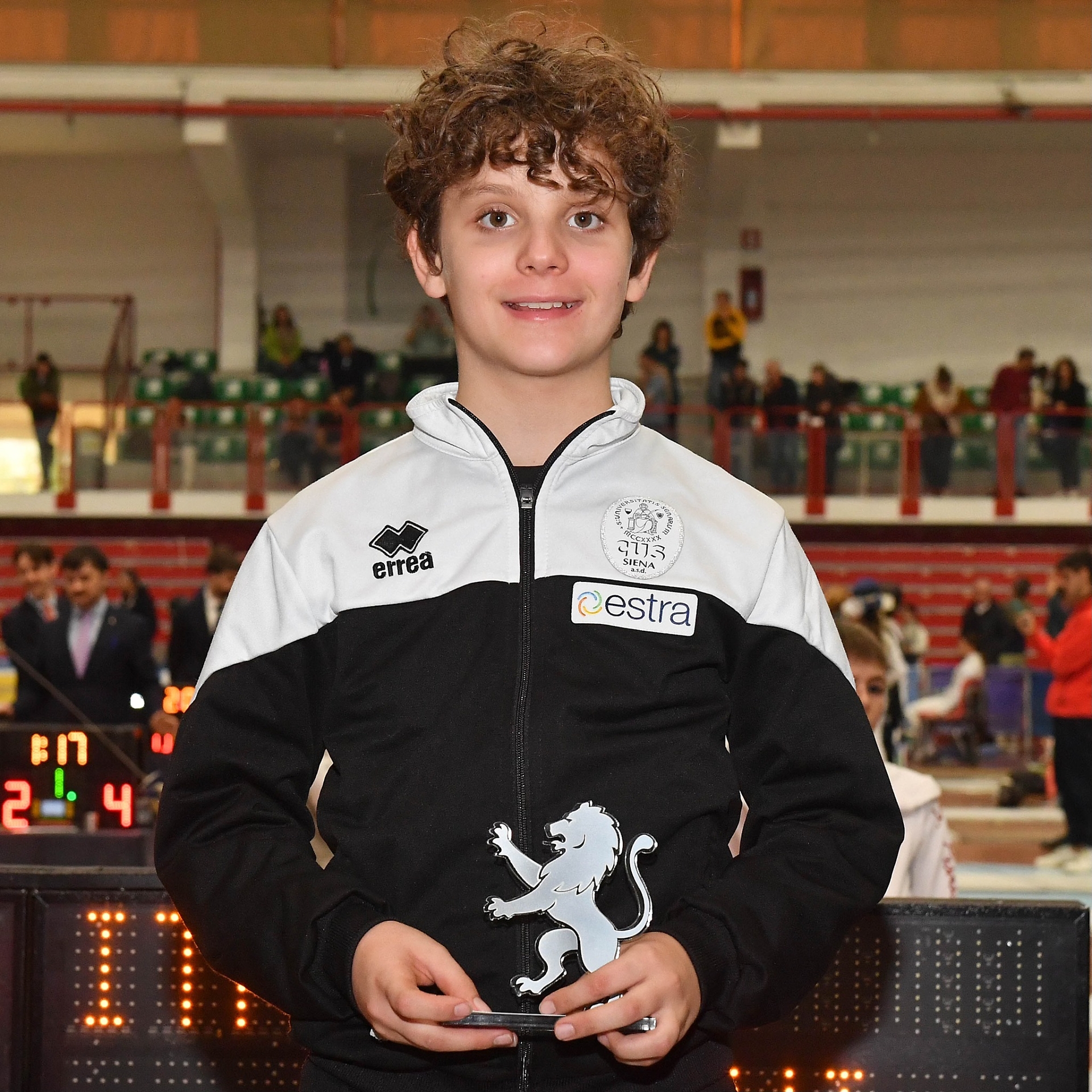 Ma le soddisfazioni più grandi, nella stessa giornata, arrivano nella categoria Giovanissimi (2014), gara che trova ben quattro atleti per il Cus Siena Estra. Una gara che vedeva la presenza di ben 107 atleti provenienti da tutta Italia ma in cui la società senese mette in tasca il miglior risultato del weekend. Nicolò Pellegrino si aggiudica il primo titolo di campione nazionale, dopo una gara perfetta senza alcuna sconfitta chiude con la ciliegina sulla torta sconfiggendo in finale lo stesso avversario che gli aveva permesso di guadagnarsi il titolo interregionale. Niccolò Marsiglietti, invece, non si toglie la soddisfazione di entrare nella top 8, la “zona premiata”, proprio a causa del derby cussino con Pellegrino nel turno dei sedicesimi. Chiude infatti la gara quattordicesimo. Più indietro di loro trovando più difficoltà ad ingranare in una gara molto competitiva Elia Cellini (46°) ed Enrico Cannoni (59°).