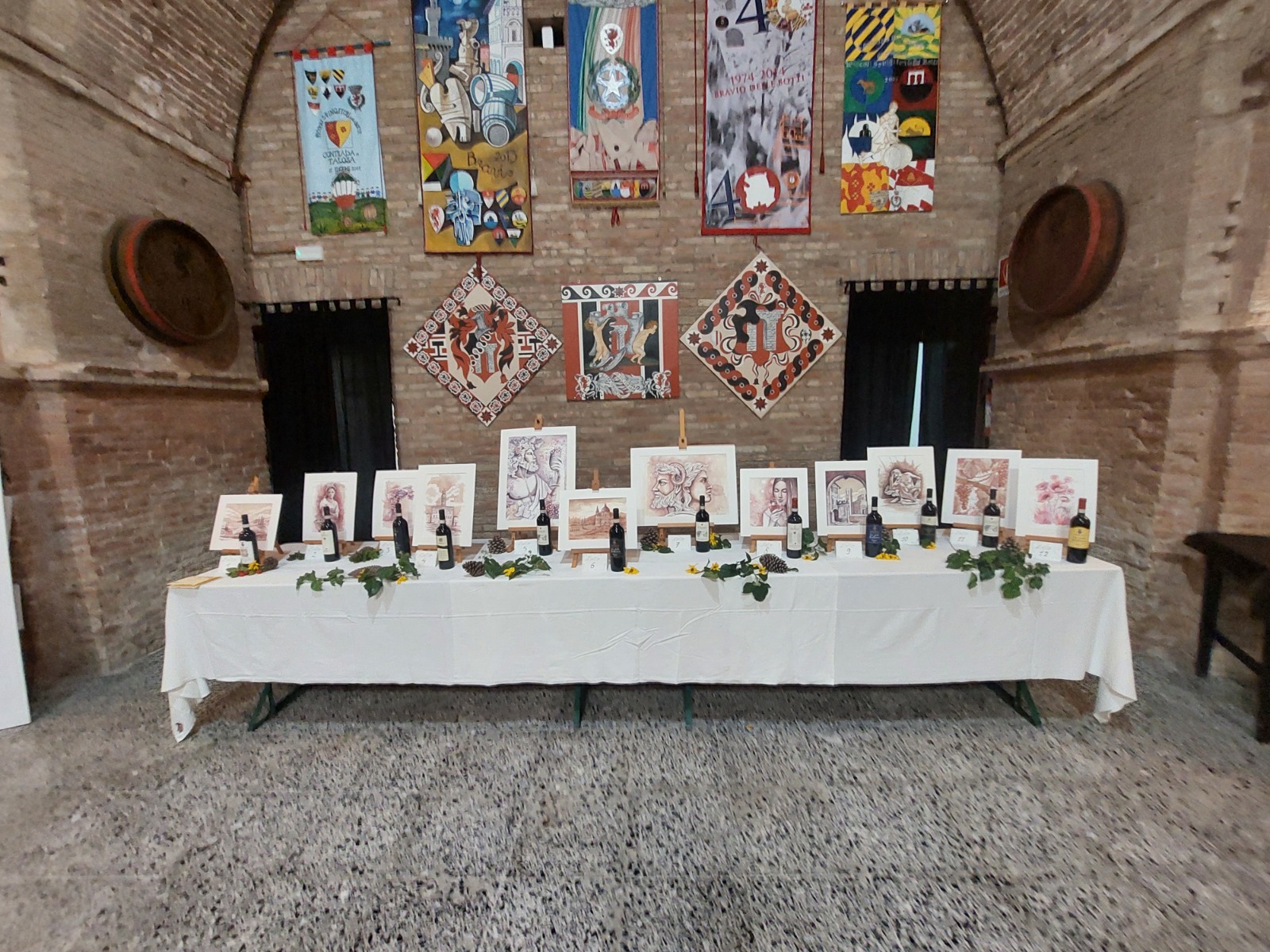 In occasione della Conviviale si è tenuta un’asta di beneficenza con 12 opere realizzate per l’occasione dall’Artista Isaura Barbieri ed eseguite con una tecnica di velature dove, a differenza dell'acquarello, si utilizza la pigmentazione naturale del vino. Ad ogni opera era abbinato un vino del territorio gentilmente offerto dai soci Alamanno Contucci (Cantine Contucci), Enrico Trabalzini (Cantine de’ Ricci), Fabio Fiorini (Cantina Godiolo) e Andrea Brettoni (Cantina Villa Cicolina).