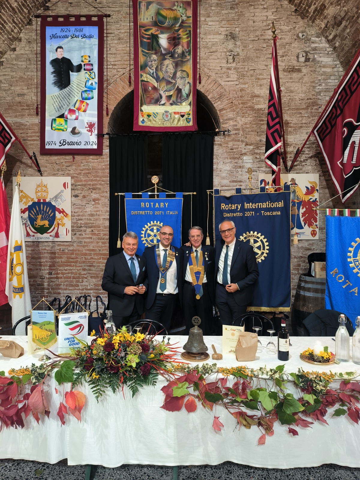 Tra i partecipanti alla Conviviale era presente il Governatore del Distretto Rotary 2071 Giorgio Odello, il quale ha affermato: “Il motto della annata Rotariana 25-26, UNITE FOR GOOD, ha trovato la sua più ampia accezione nella splendida serata organizzata dal RC Chianciano-Chiusi-Montepulciano. La presenza di numerosi RC del Distretto 2071-Toscana e quella di RC provenienti da tutta l’Italia e dalla Svizzera ci ha fatto vivere momenti in amicizia Rotariana, forieri di scambi di idee ed esperienze che ci hanno resi tutti più determinati nel perseguire gli scopi della Associazione di Servizio Rotary International che sono di migliorare la qualità di vita delle comunità a noi lontane, a noi vicine ed in questo modo anche migliorare noi stessi”.
