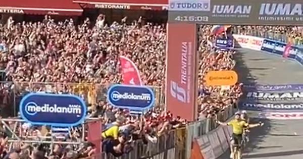 Applausi di piazza del Campo a Wout Van Aert primo sul traguardo di Siena della tappa del Giro d'Italia partita da Gubbio. Una giornata storica per la città del Palio.