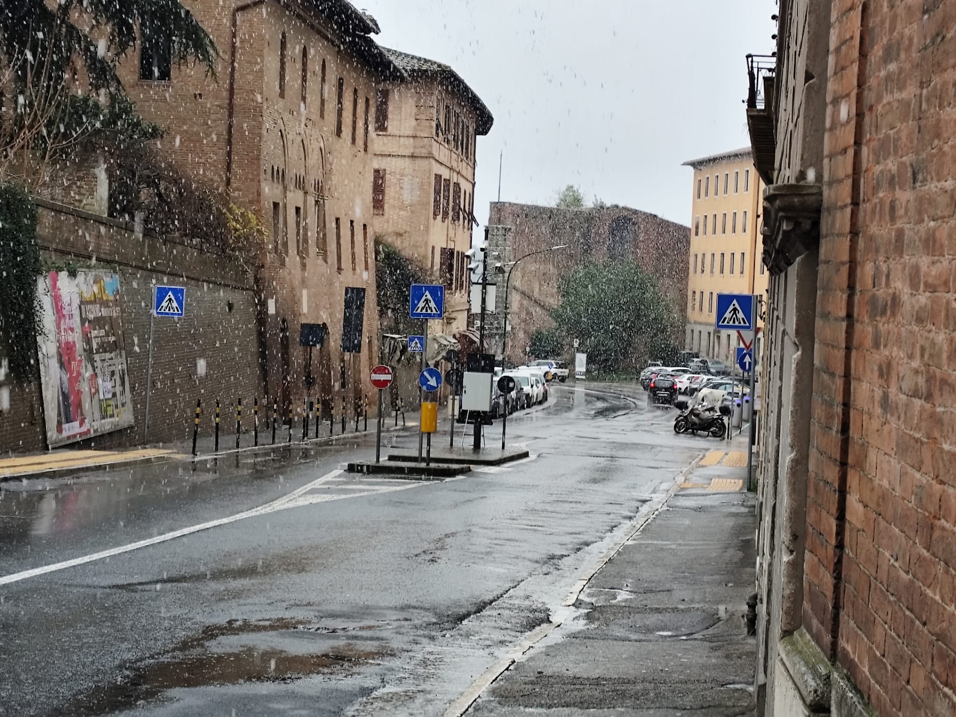 Da questa mattina (6 gennaio 2026) Siena e la provincia sono sotto una precipitazione di neve prevista da giorni dalle previsioni meteo. La coltre ha subito attecchito in Valdelsa ma piano piano ha imbiancato anche la Valdarbia, la Valdichiana, la Valdichiana e, piano piano, anche il capoluogo, dove la pioggia precedente aveva in un primo momento rallentato il processo. Vediamo la situazione tra Porta Ovile e Pian d'Ovile fino a via Garibaldi
