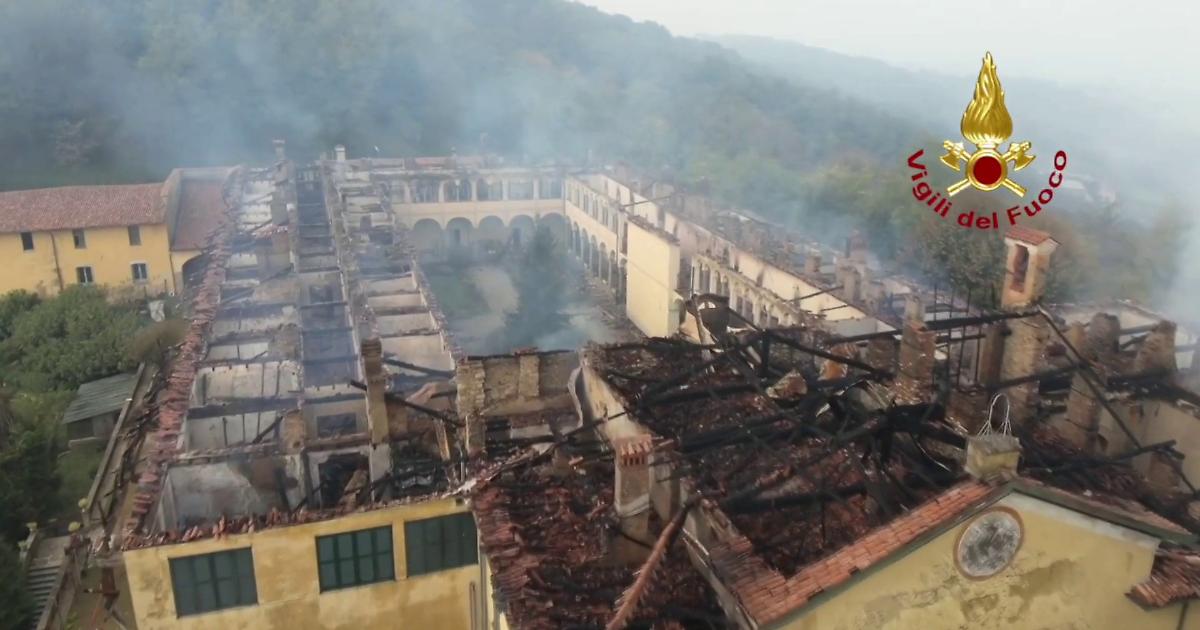 In fiamme il monastero della Bernaga nel Lecchese, le immagini