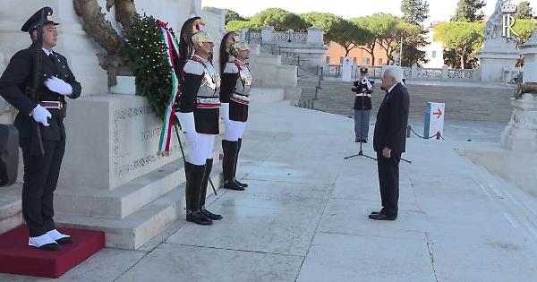 Mattarella depone una corona d’alloro sulla Tomba del Milite Ignoto