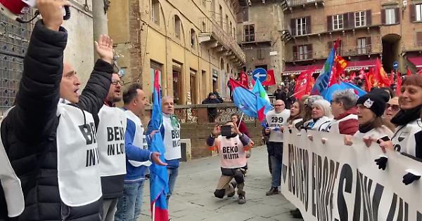 Affluenza significativa di lavoratori in corteo per lo sciopero indetto da Fiom Cgil, Fim Cisl e Uilm Uil, con l'obiettivo di chiedere il rinnovo del contratto dei metalmeccanici. Circa 600 persone hanno sfilato lungo le vie del centro di Siena, tra slogan e rivendicazioni. Alla testa del corteo i dipendenti della Beko Europe, che indossavano pettorine con la scritta “Beko in lotta” e “299 motivi per resistere”. Slogan e canti fino in Piazza del Campo, davanti a Palazzo Pubblico per evidenziare le motivazioni profonde e le necessità concrete dei lavoratori che rischiano di perdere il posto di lavoro nel 2025 con la chiusura dell'azienda.