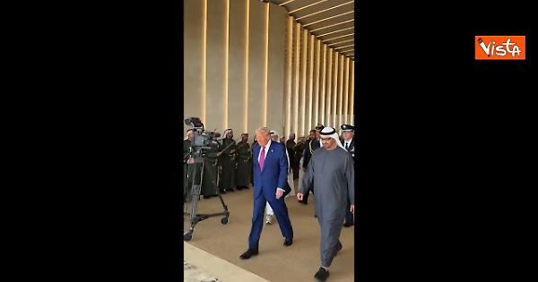 Il presidente degli Stati Uniti, Donald Trump, è ad Abu Dhabi per l’ultima tappa del suo tour regionale in Medio Oriente che lo ha visto già in Arabia Saudita e in Qatar. Trump è stato accolto anche con a “danza dei capelli” (o danza Khaliji), un tipo di danza tradizionale di origine araba, prevalentemente di gruppo, che si caratterizza per la fluidità e i virtuosismi eseguiti con la testa e i capelli.